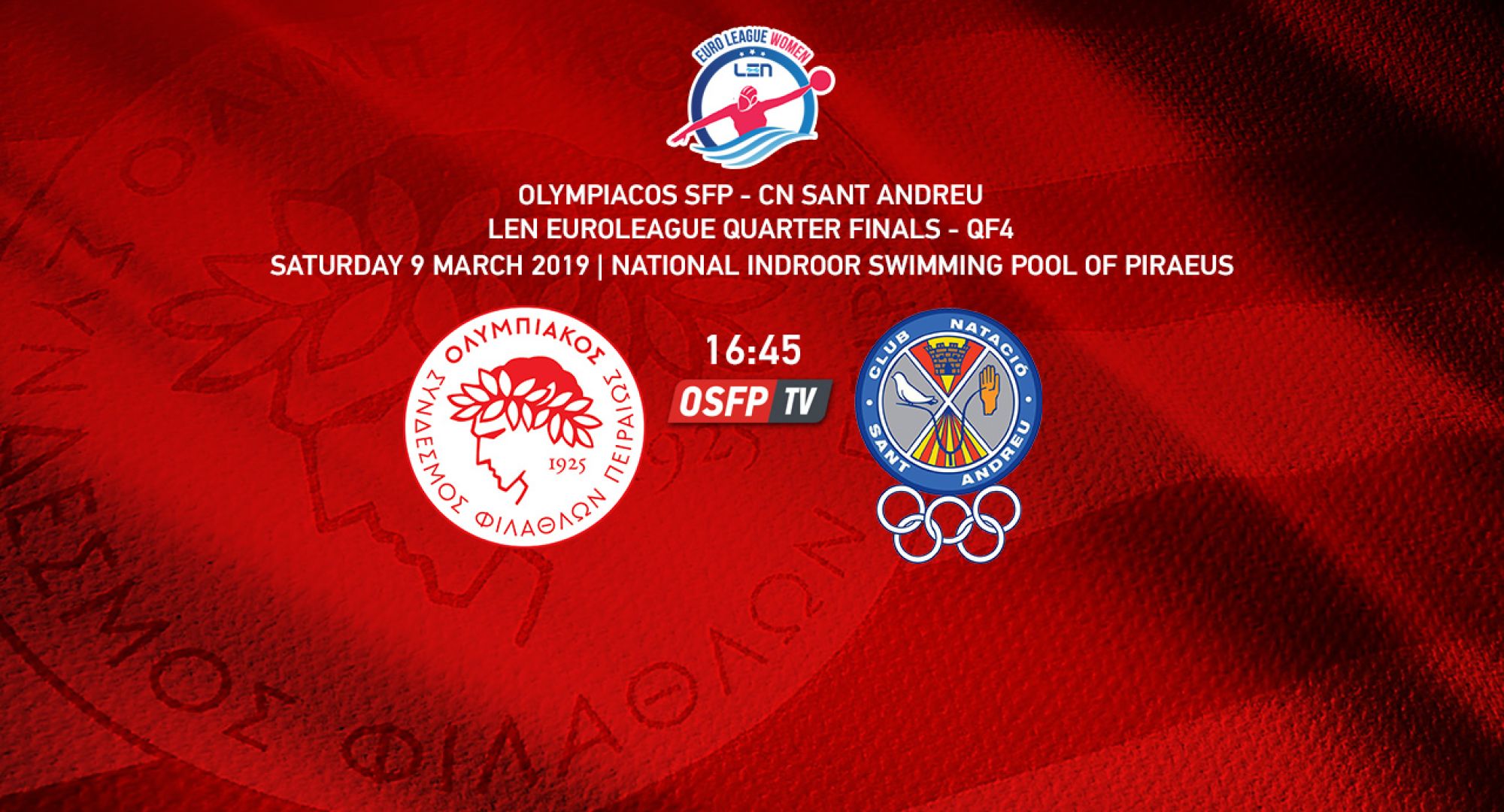 Παρακολουθήστε ζωντανά τον επαναληπτικό προημιτελικό, της ομάδας πόλο γυναικών του Ολυμπιακού με την Ισπανική Club Natacio Sant Andreu, το Σάββατο 9 Μαρτίου στις 16:45 για την πρόκριση στο Final4 της Euroleague!