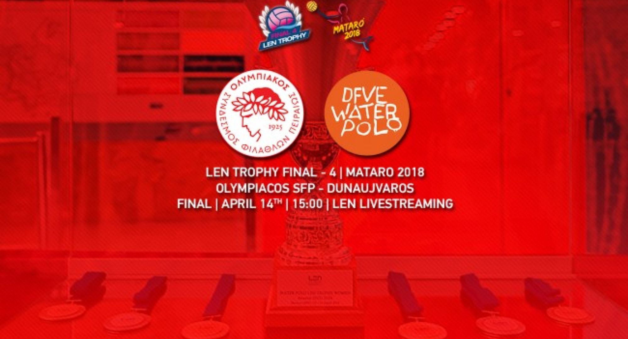 Παρακολουθήστε ζωντανά τον τελικό του LEN Trophy Final 4 στο Ματαρό, με τον Ολυμπιακό να αντιμετωπίζει την Ουγγρική Ντουναϊσβάρος για το τρόπαιο σήμερα στις 14:00