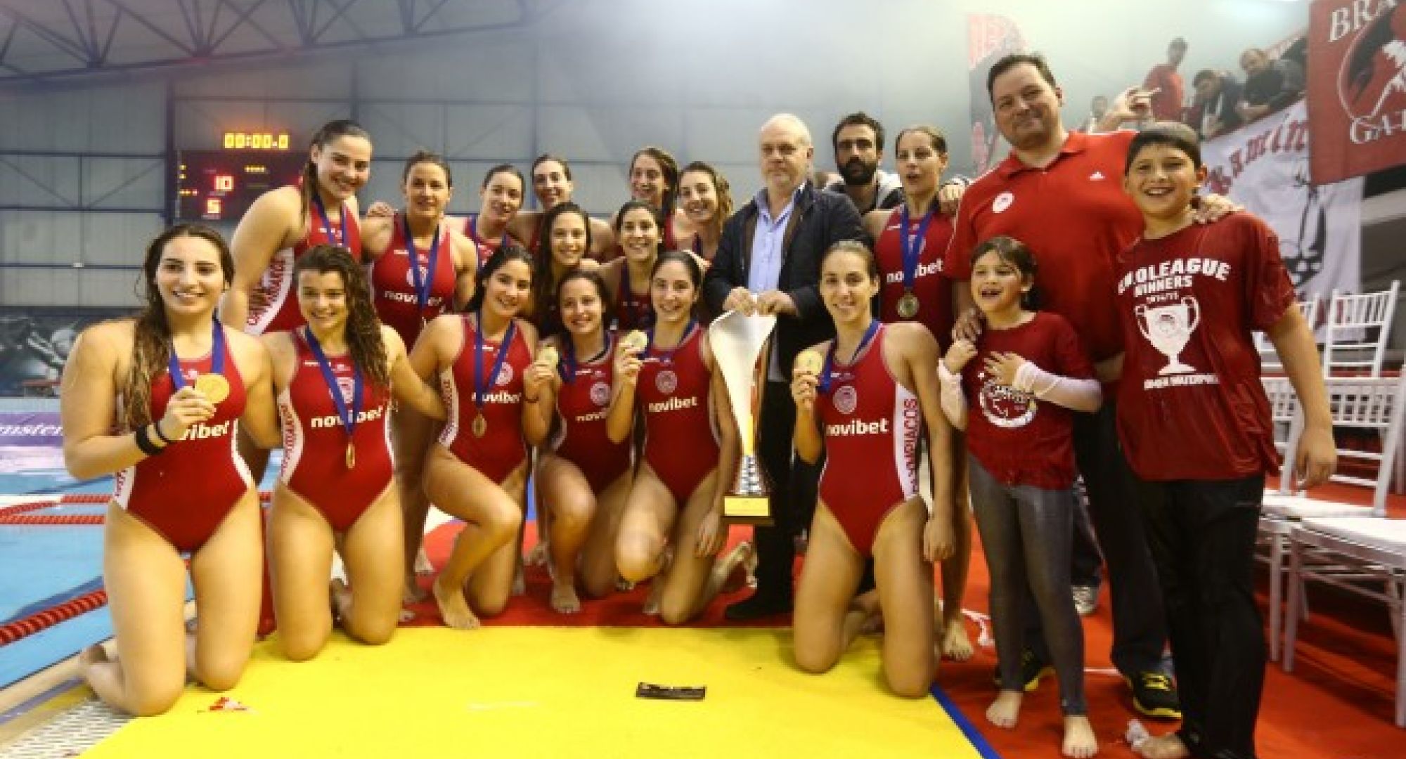 The women’s water polo team added another glorious moment in the club history. The ‘’Reds’’ won 10-6 against Padova in the Super Cup Final held in Piraeus. It was the third consecutive European title for the team of Haris Pavlides as it won the Euroleague last year and Len Trophy two years ago.