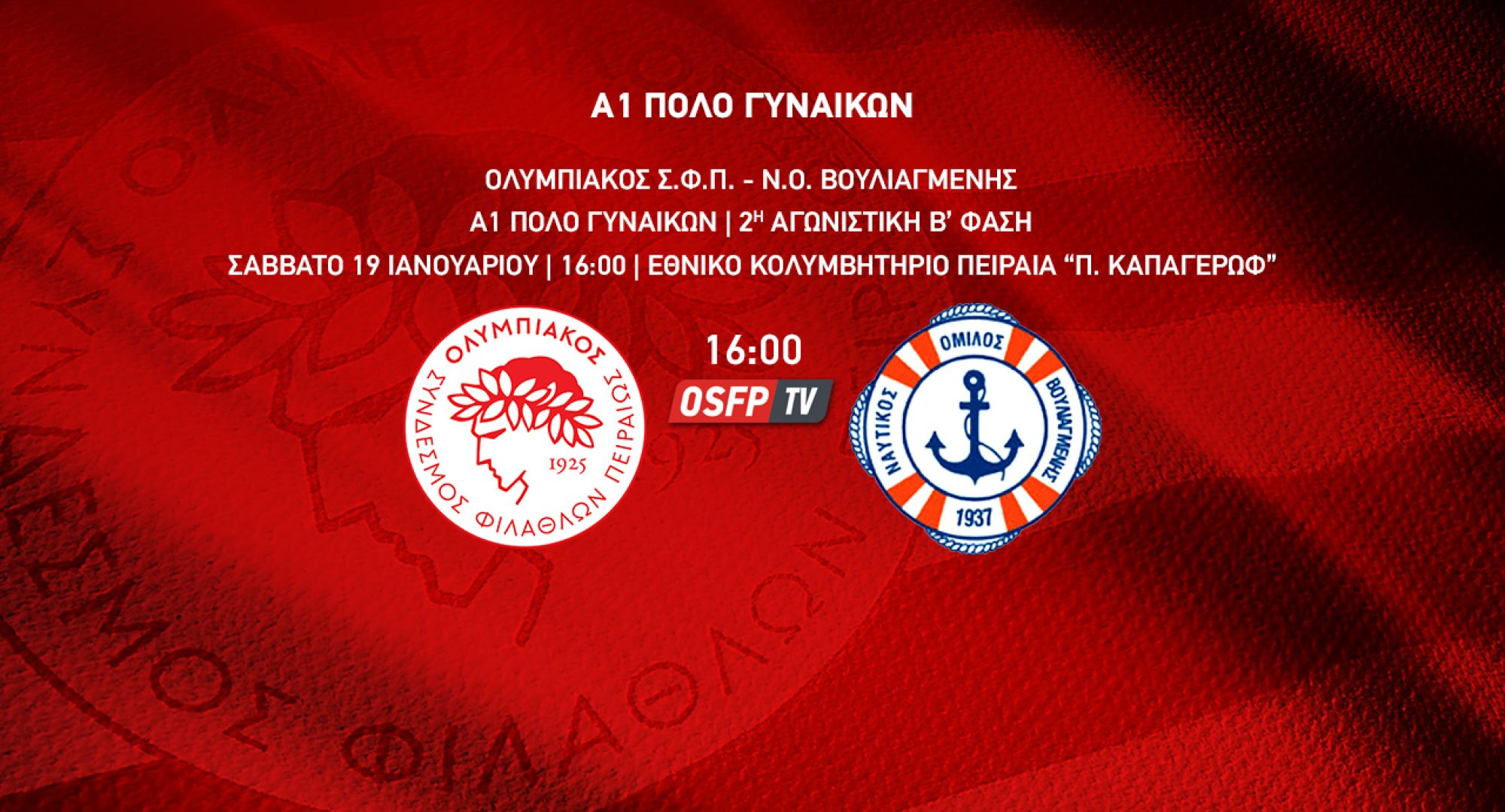 Παρακολουθήστε ζωντανά, την αναμέτρηση Ολυμπιακός Σ.Φ.Π. - Ν.Ο. Βουλιαγμένης για την 2η Αγωνιστική της Β' Φάσης του Πρωταθλήματος Α1 Πόλο Γυναικών, το Σάββατο 19 Ιανουαρίου, στις 16:00, απο το OSFP TV!