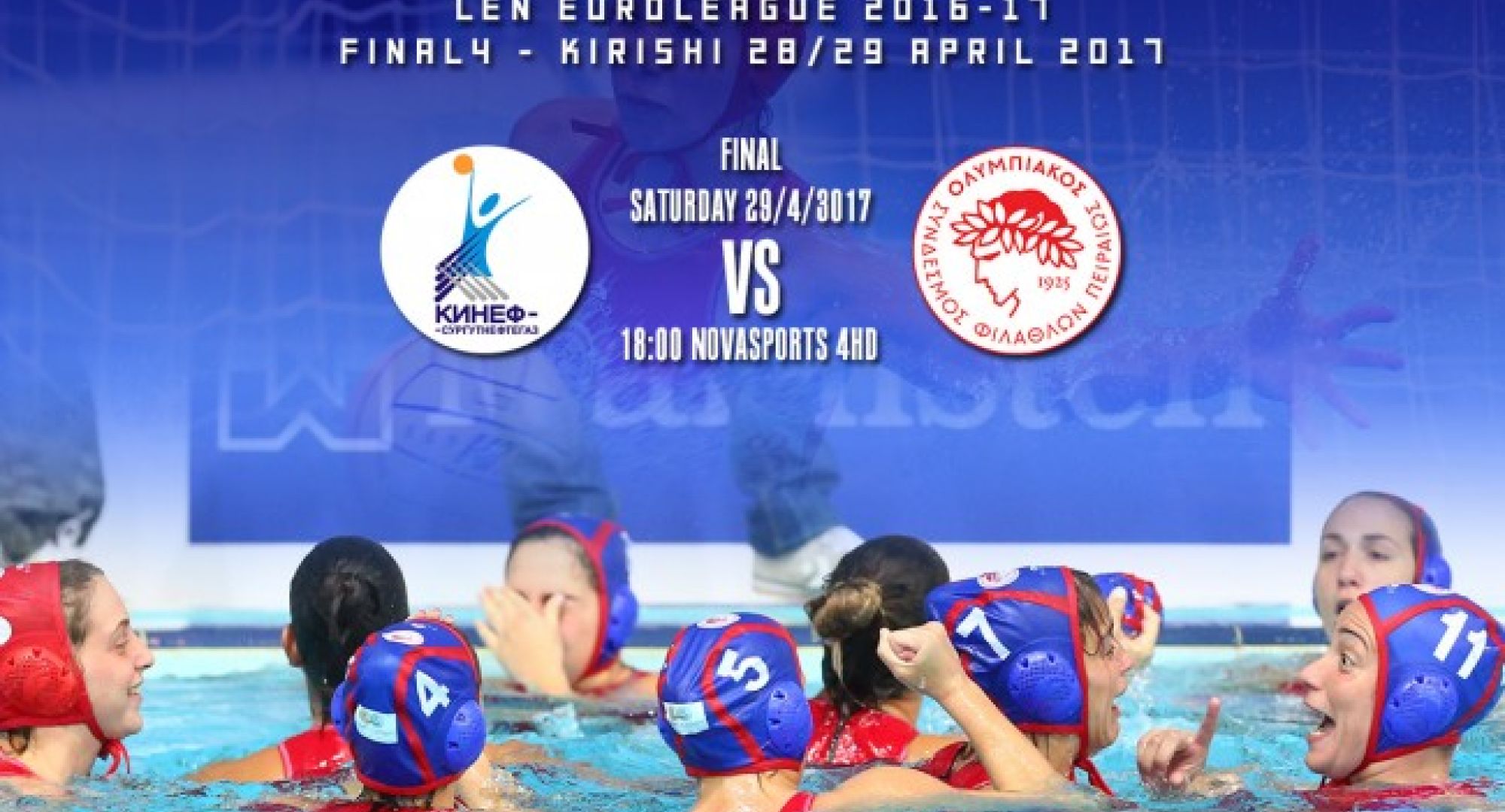 Έτοιμος για ένα ακόμα μεγάλο ευρωπαϊκό ραντεβού, στο οποίο θα δώσει το παρών, είναι ο Ολυμπιακός. H oμάδα πόλο Γυναικών του Θρύλου, μετά την σπουδαία πρόκριση σε βάρος της απερχόμενης πρωταθλήτριας Ευρώπης, Σαμπαντέλ, αντιμετωπίζει σήμερα στις 18:00 (Novasports 4HD), την διοργανώτρια του Final 4 της EuroLeague, Κίνεφ Κίρισι. Ο Θρύλος διεκδικεί το 2ο Πρωτάθλημα Ευρώπης σε τρία χρόνια και τον 4ο ευρωπαϊκό τίτλο σε τέσσερα χρόνια.