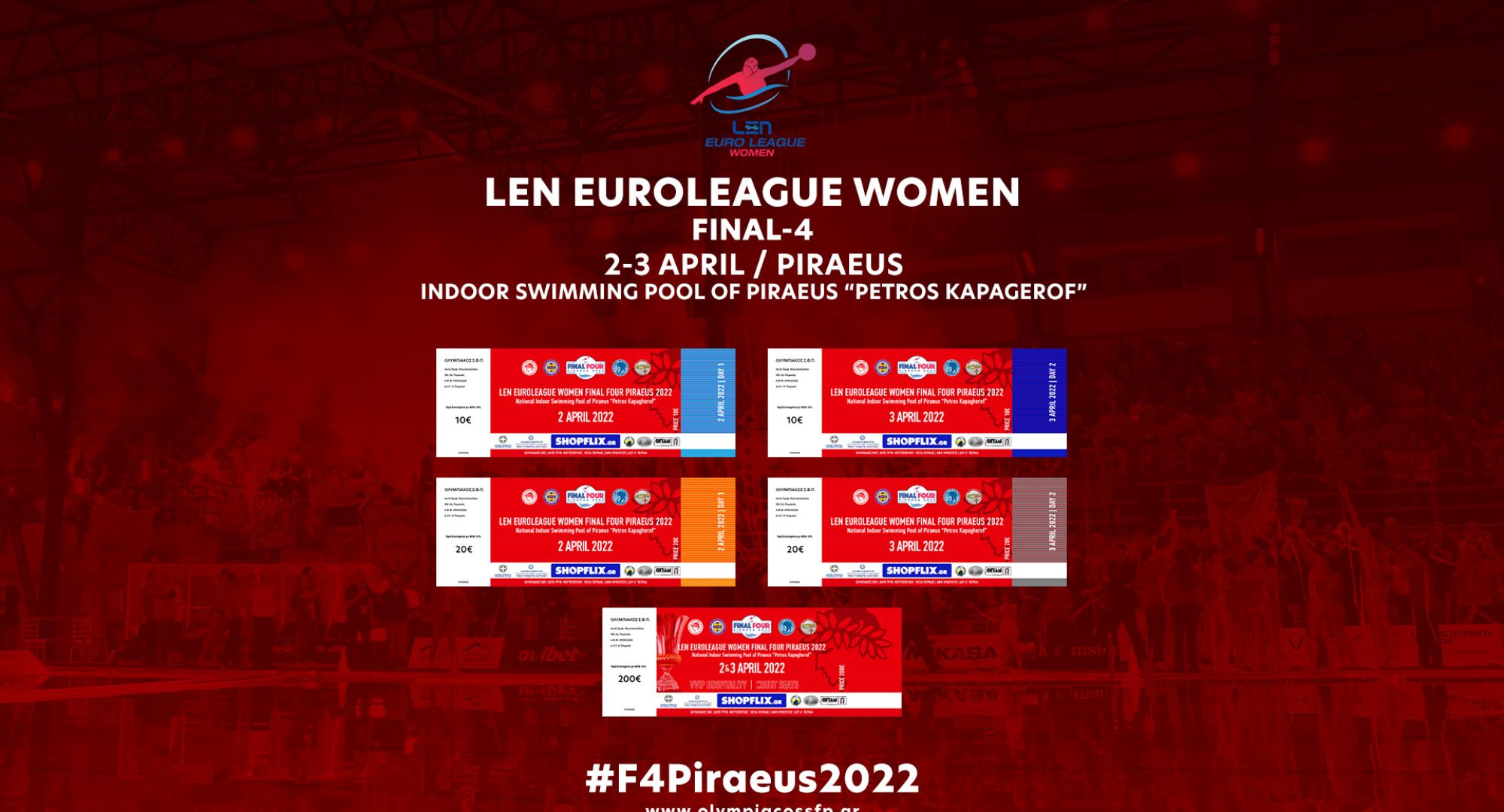 O ΟΛΥΜΠΙΑΚΟΣ Σ.Φ.Π. για το Final 4 της Euroleague που θα διεξαχθεί το Σαββατοκύριακο 2-3 Απριλίου στο Κολυμβητήριο Πειραιά «Π. Καπαγέρωφ», ενημερώνει τους φίλους της ομάδας για τα εξής:
