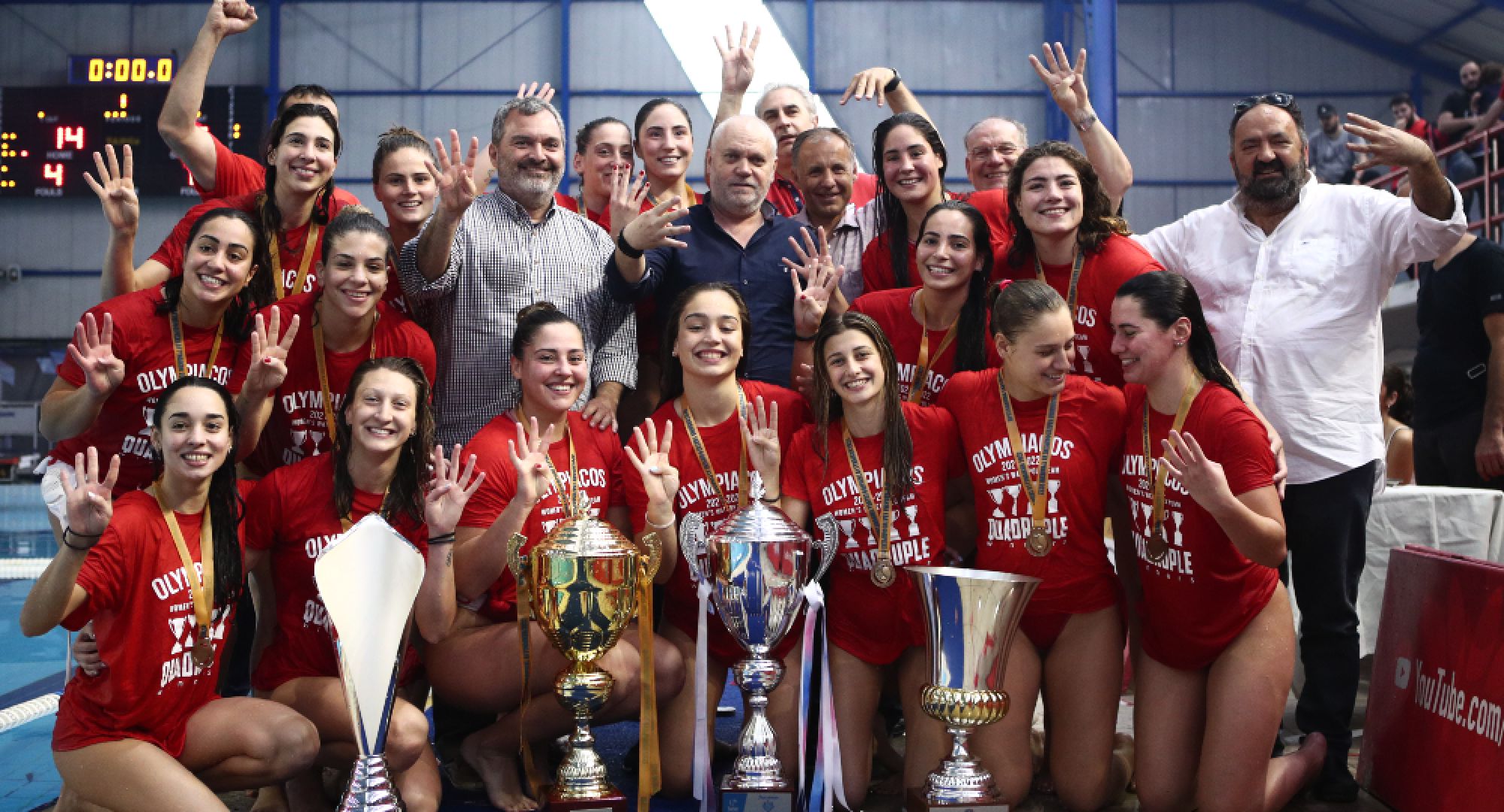 Μία ακόμη «χρυσή» σελίδα στην ιστορία της έγραψε η ομάδα πόλο Γυναικών του Ολυμπιακού, ολοκληρώνοντας ονειρικά τη σεζόν 2021-22, με ένα ιστορικό επίτευγμα, το quadruple! Οι πρωταθλήτριες Ευρώπης κατέκτησαν το 9ο διαδοχικό πρωτάθλημα της ιστορίας τους και 13ο συνολικά, πανηγυρίζοντας αήττητες τέσσερις τίτλους (πρωτάθλημα, Κύπελλο, Euroleague, LEN Super Cup) τη φετινή αγωνιστική χρονιά! Τα κορίτσια του Θρύλου επικράτησαν με 14-9, στον τρίτο τελικό της Α1, έκαναν το 3-0 στη σειρά και σήκωσαν για 9η διαδοχική χρονιά τον τίτλο, μέσα σε ξέφρενους πανηγυρισμούς στο Παπαστράτειο. Μία φανταστική σεζόν για τις «ερυθρόλευκες» του Αλεξάνταρ Τσίριτς, που μετά το «back to back» πρωτάθλημα Ευρώπης, έγραψαν για άλλη μία φορά ιστορία, με το αήττητο quadruple!