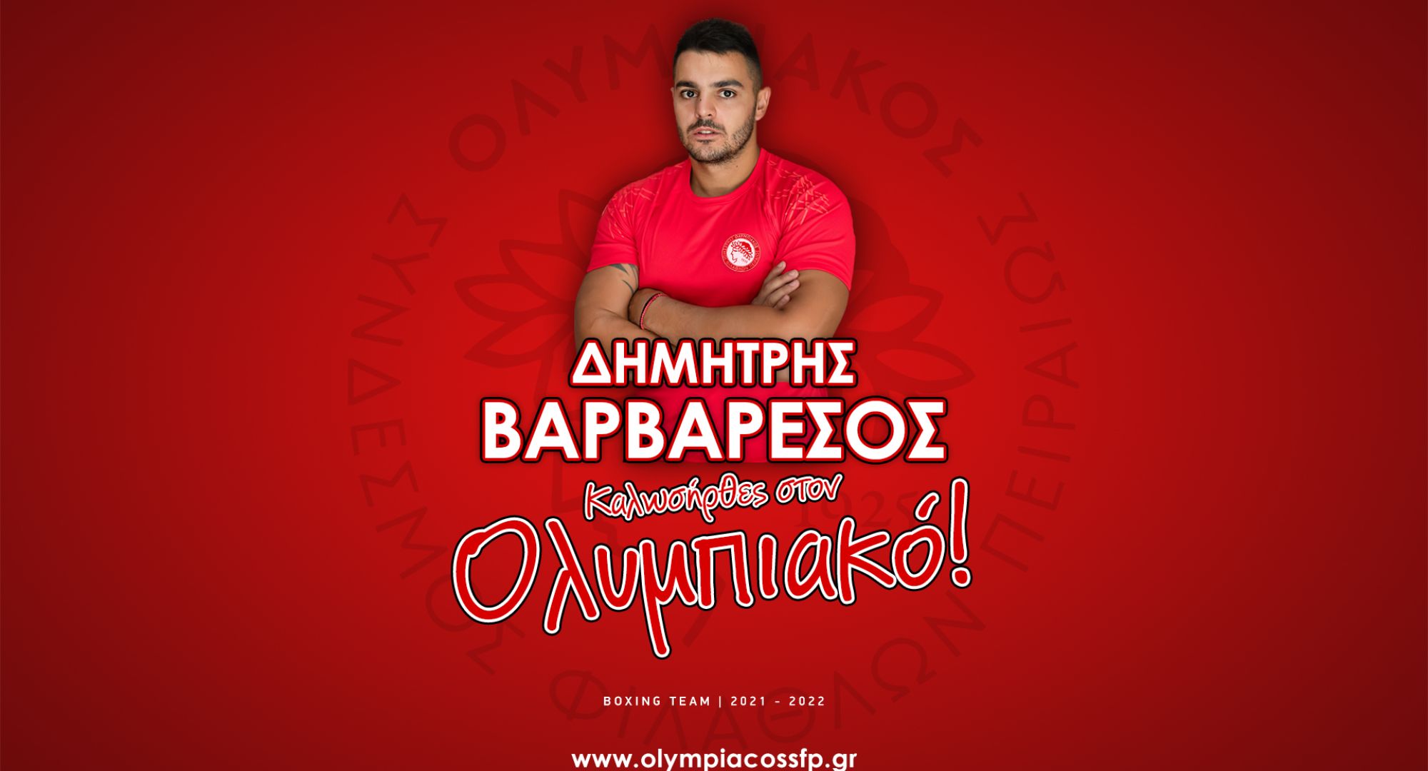 ΟΛΥΜΠΙΑΚΟΣ Σ.Φ.Π. ανακοινώνει την έναρξη της συνεργασίας του με τον Δημήτρη Βαρβαρέσο ο οποίος εντάσσεται στο τμήμα Πυγμαχίας του συλλόγου μας. Ο Δημήτρης Βαρβαρέσος είναι γεννημένος στις 5/3/1990 και αγωνίζεται στην κατηγορία των 81kg.