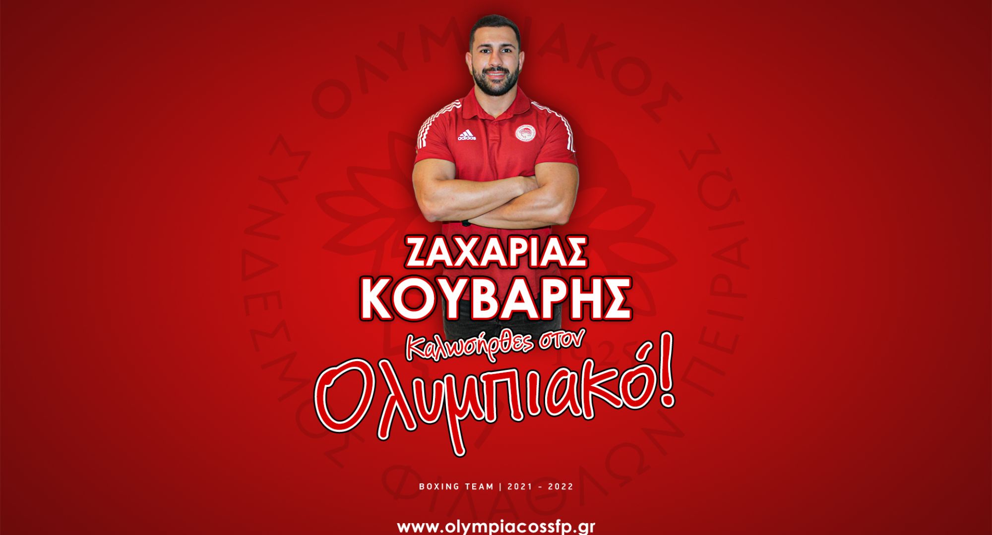ΟΛΥΜΠΙΑΚΟΣ Σ.Φ.Π. ανακοινώνει την έναρξη της συνεργασίας του με τον Zαχαρία Κούβαρη ο οποίος εντάσσεται στο τμήμα Πυγμαχίας του συλλόγου μας. Ο Ζαχαρίας Κούβαρης είναι γεννημένος στις 3/10/1993 και αγωνίζεται στην κατηγορία των 86kg.