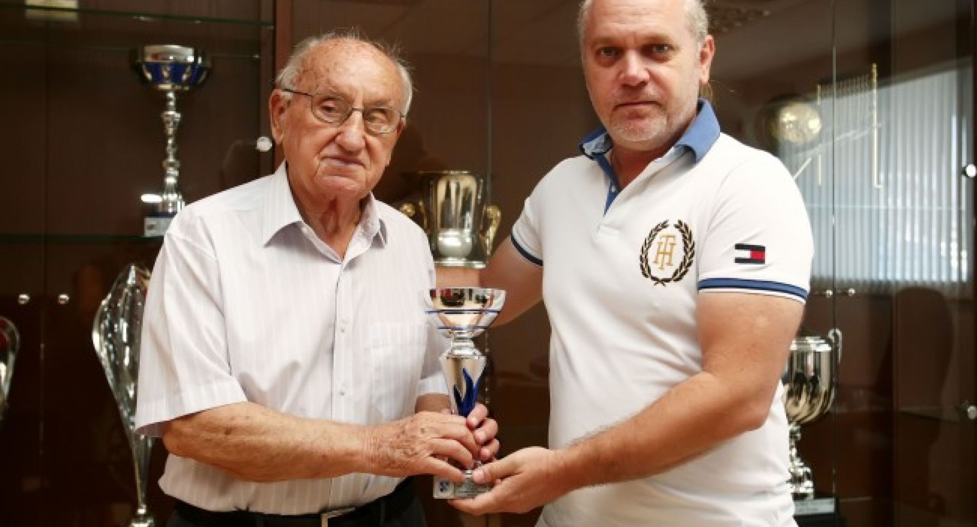 Την κούπα του Πανελληνίου Πρωταθλήματος Ανδρών την οποία κατέκτησε η ομάδα του Ολυμπιακού την Κυριακή 20 Ιουλίου στο ΟΑΚΑ παρέδωσε το μεσημέρι της Τετάρτης στον Πρόεδρο του Ερασιτέχνη κ. Κουντούρη ο έφορος και Αρχιπροπονητής του Τμήματος κ. Βεντίκος. Ο άνθρωπος που δημιούργησε το Τμήμα Στίβου του Ολυμπιακού εξήγησε στον κ. Κουντούρη, στη συνάντηση που πραγματοποιήθηκε στα γραφεία στην Πλατεία Αλεξάνδρας, τις δυσκολίες που είχε η κατάκτηση αυτού του Πρωτάθληματος αφού από τον Ολυμπιακό απουσίαζαν, λόγω τραυματισμών, πολλοί σπουδαίοι αθλητές.