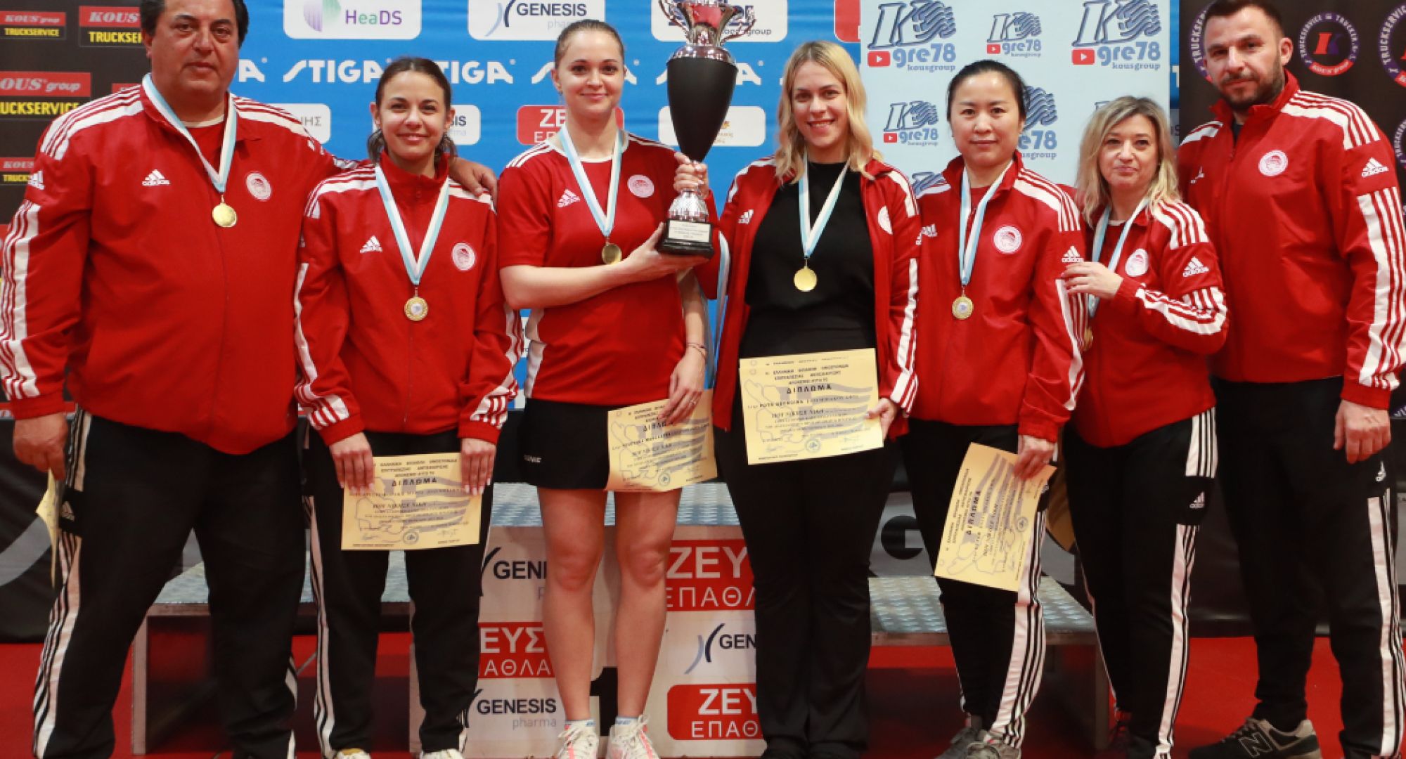 Πρωταθλήτρια Ελλάδας για 29η φορά στην ένδοξη ιστορία της αναδείχθηκε -αήττητη- η ομάδα επιτραπέζιας αντισφαίρισης Γυναικών του Ολυμπιακού! Ο Θρύλος νίκησε με 4-0 σετ τον Παναθηναϊκό στο Στάδιο Ειρήνης και Φιλίας, στον τελικό των πλέι οφ της Α1 κατηγορίας και κατέκτησε τον τίτλο για 29η χρονιά (πολυνίκης του θεσμού) και τρίτη σερί. Οι «ερυθρόλευκες» κυριάρχησαν τόσο στον τελικό με τις «πράσινες» στο ΣΕΦ, όσο και όλη τη σεζόν στο πρωτάθλημα, αφού δεν ηττήθηκαν από καμία ομάδα, προσθέτοντας πανάξια έναν ακόμα τίτλο στην «τροπαιοθήκη». Νωρίτερα, στον ημιτελικό των πλέι οφ της Α1, η ομάδα του Γιώργου Χριστοφοράκη επικράτησε με 4-0 σετ του ΑΣ Πέρα στην αίθουσα πινγκ πονγκ του ΣΕΦ και προκρίθηκε στον τελικό, όπου πανηγύρισε το τρόπαιο!