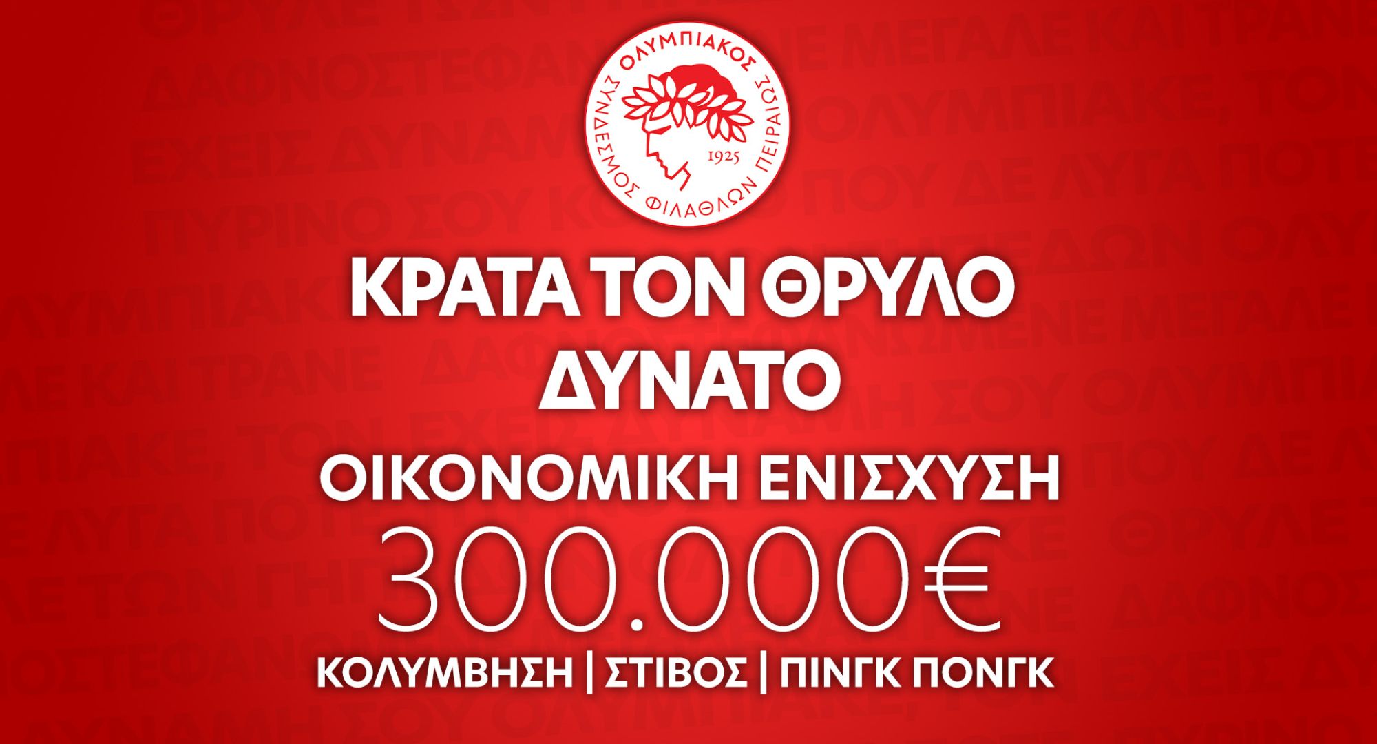 Ελπίζουμε και επιθυμούμε σφόδρα την επιτυχή ολοκλήρωση της ενέργειας, που θα αποδείξει για μια ακόμη φορά ότι ο ΟΛΥΜΠΙΑΚΟΣ ΣΥΝΔΕΣΜΟΣ ΦΙΛΑΘΛΩΝ ΠΕΙΡΑΙΩΣ έχει δύναμη τον πύρινο του κόσμο.
