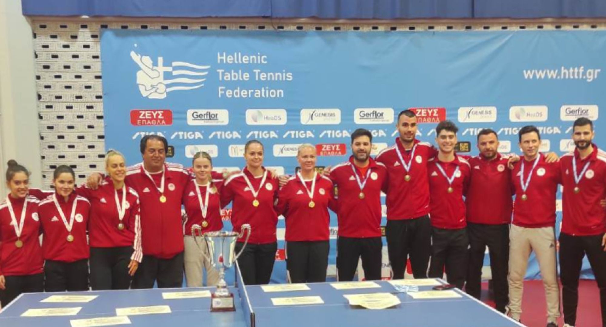 Με τον καλύτερο τρόπο ολοκλήρωσαν τα φετινά πρωταθλήματα της Α1 κατηγορίας οι ομάδες επιτραπέζιας αντισφαίρισης Ανδρών και Γυναικών του Ολυμπιακού. Τόσο η ανδρική, όσο και η γυναικεία ομάδα του Θρύλου κατέκτησαν αήττητες το πρωτάθλημα, κυριαρχώντας απόλυτα στη σεζόν 2022-23. Μετά τις νίκες (4-1, 4-0) στους «τελικούς» με τον Παναθηναϊκό, το πρωί του Σαββάτου (29/4) στο ΣΕΦ, οι «ερυθρόλευκες» ομάδες συνέχισαν νικηφόρα και το απόγευμα, στις τελευταίες αγωνιστικές και… συνόδευσαν με το «αήττητο» την κατάκτηση των πρωταθλημάτων της Α1. Το ανδρικό τμήμα του Ολυμπιακού έφτασε τα 16 πρωταθλήματα στην ιστορία του, ενώ το αντίστοιχο των Γυναικών κατέκτησε το 28ο!