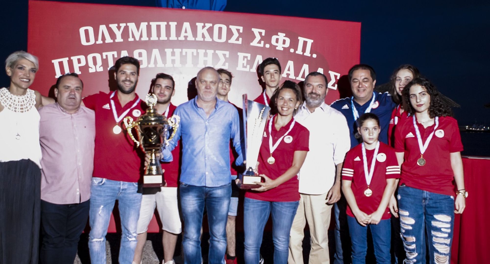 Παρουσία του Προέδρου του Ολυμπιακού Σ.Φ.Π. , Μιχάλη Κουντούρη, του Γενικού Αρχηγού Γιάννη Δαλέζιου, της Γενικής Γραμματέας Χριστίνας Τσιλιγκίρη, μελών του Δ.Σ του συλλόγου, του Γενικού Γραμματέα της Ελληνικής Ολυμπιακής Επιτροπής και Προέδρου της Ελληνικής Ομοσπονδίας Επιτραπέζιας Αντσφαίρισης Μανώλη Κολυμπάδη οι δυο αρχηγοί Τάσος Ρηνιώτης και Μαρία Χριστοφοράκη σήκωσαν τις κούπες του πρωταθλήματος που κατακτήθηκαν στις 17 και 18 Μαρτίου.
