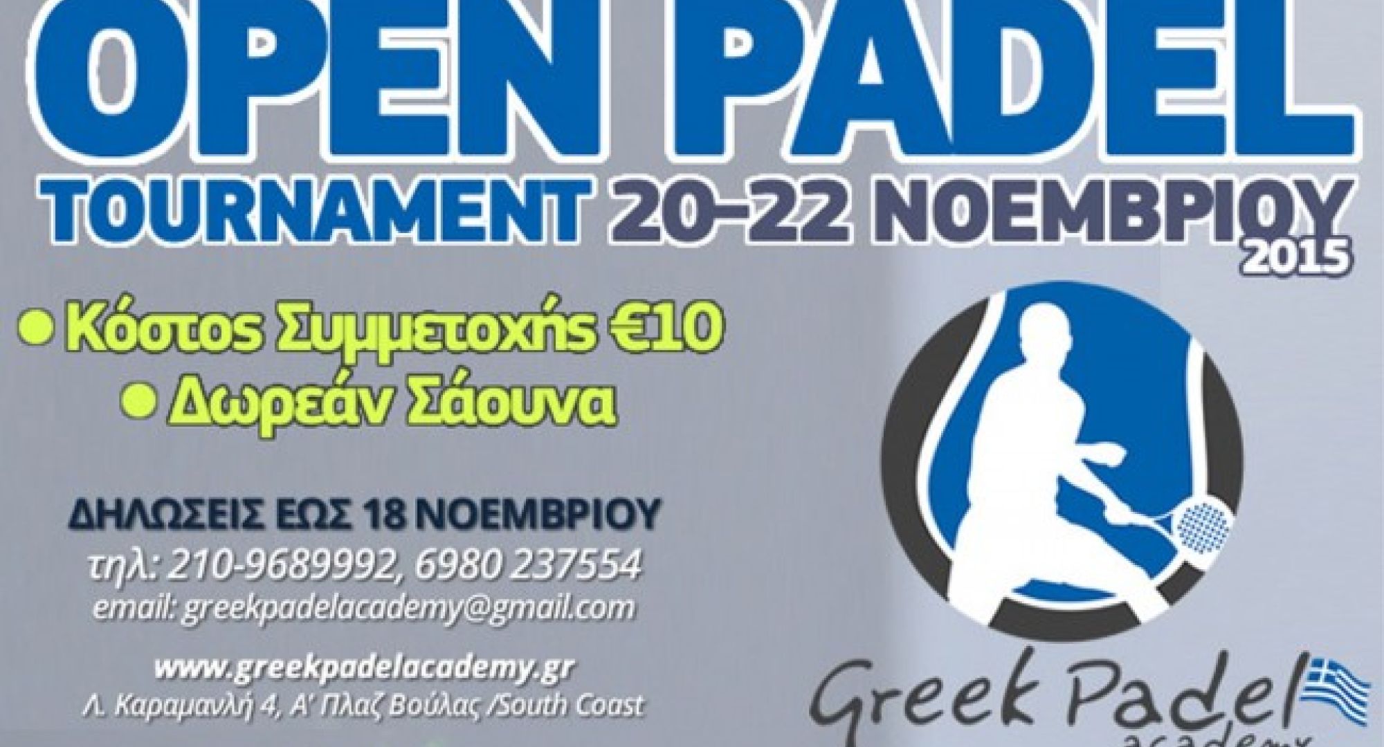 Για περισσότερες πληροφορίες επισκεφθείτε την ιστοσελίδα: www.greekpadelacademy.gr