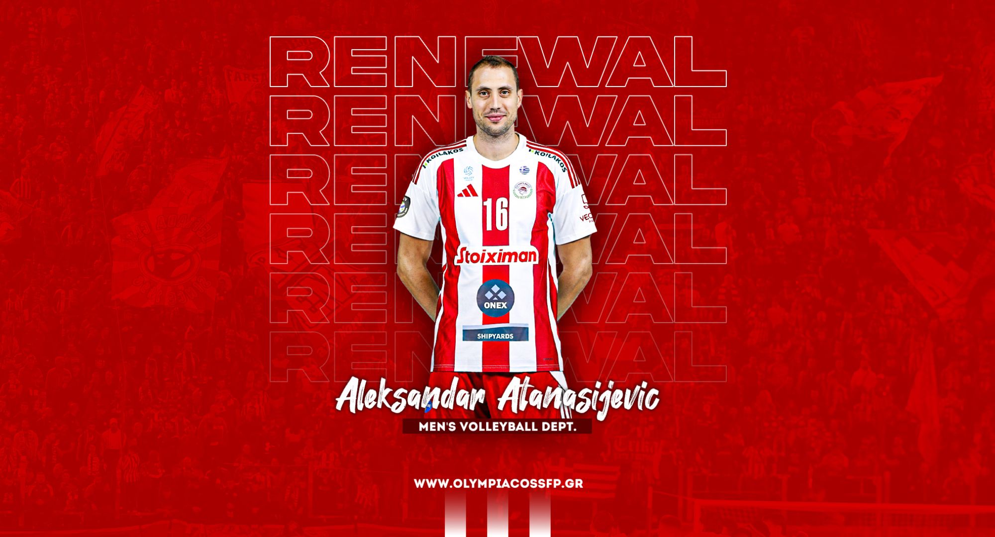 Ο ΟΛΥΜΠΙΑΚΟΣ Σ.Φ.Π. ανακοινώνει την ανανέωση της συνεργασίας του με τον Αλεξάνταρ Ατανασίεβιτς. Ο Σέρβος διαγώνιος υπέγραψε το νέο του συμβόλαιο και παραμένει στο ρόστερ της ομάδας βόλεϊ Ανδρών του συλλόγου.