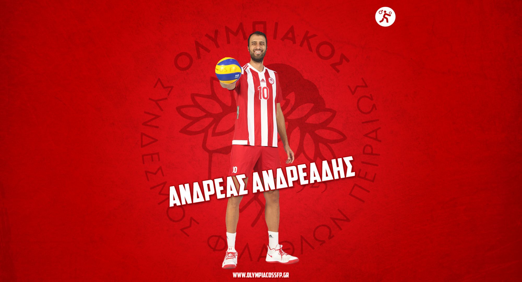 Ο ΟΛΥΜΠΙΑΚΟΣ Σ.Φ.Π., ανακοινώνει την ανανέωση της συνεργασίας του με τον Ανδρέα Ανδρεάδη. Ο διεθνής κεντρικός υπέγραψε το νέο του συμβόλαιο και θα παραμείνει στο δυναμικό της ομάδας βόλεϊ Ανδρών.