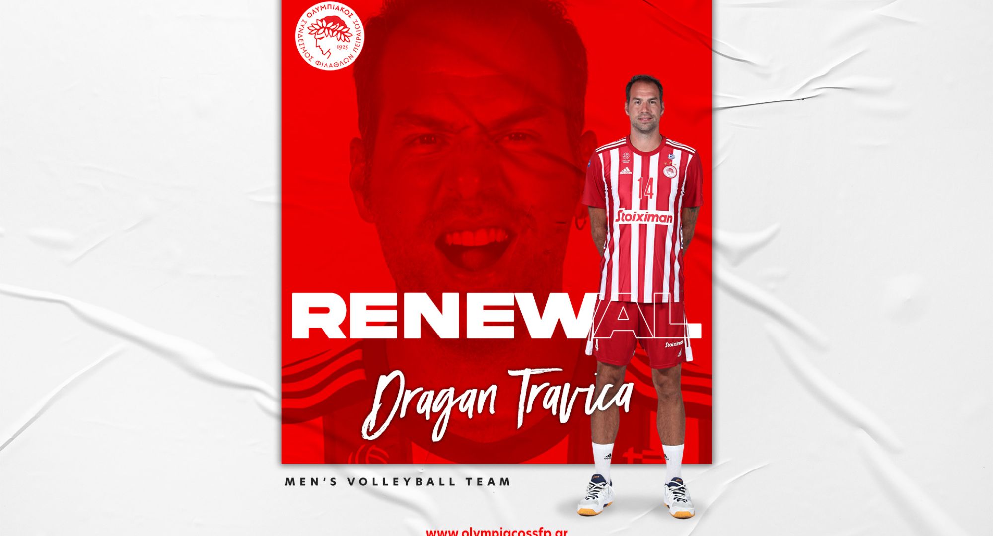 Ο ΟΛΥΜΠΙΑΚΟΣ Σ.Φ.Π. ανακοινώνει την ανανέωση της συνεργασίας του με τον Ντράγκαν Τράβιτσα. Ο Ιταλός πασαδόρος υπέγραψε το νέο του συμβόλαιο και παραμένει στο ρόστερ της ομάδας βόλεϊ Ανδρών του συλλόγου.