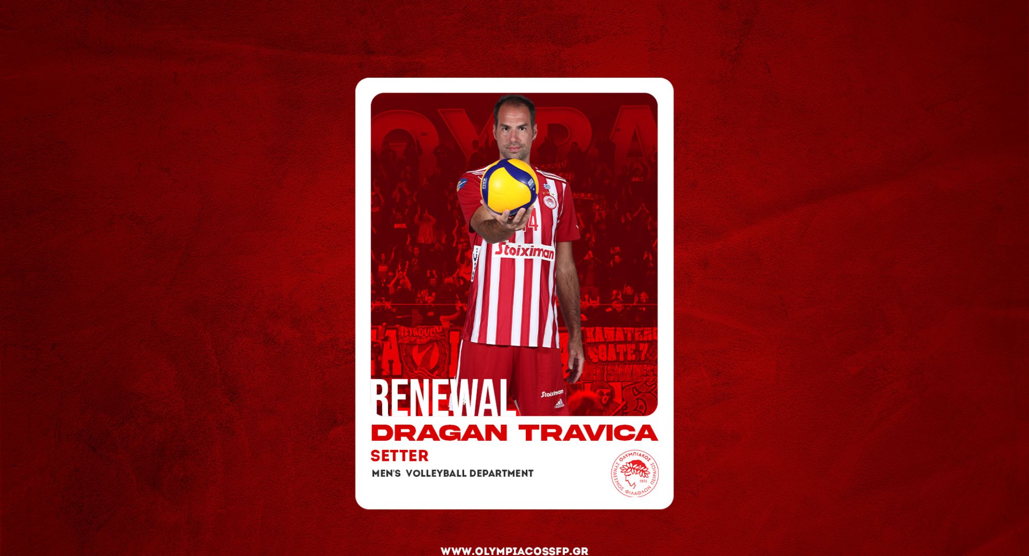 Ο ΟΛΥΜΠΙΑΚΟΣ Σ.Φ.Π. ανακοινώνει την ανανέωση της συνεργασίας του με τον Ντράγκαν Τράβιτσα. Ο αρχηγός και Ιταλός πασαδόρος υπέγραψε το νέο του συμβόλαιο και παραμένει στο ρόστερ της ομάδας βόλεϊ Ανδρών του συλλόγου.