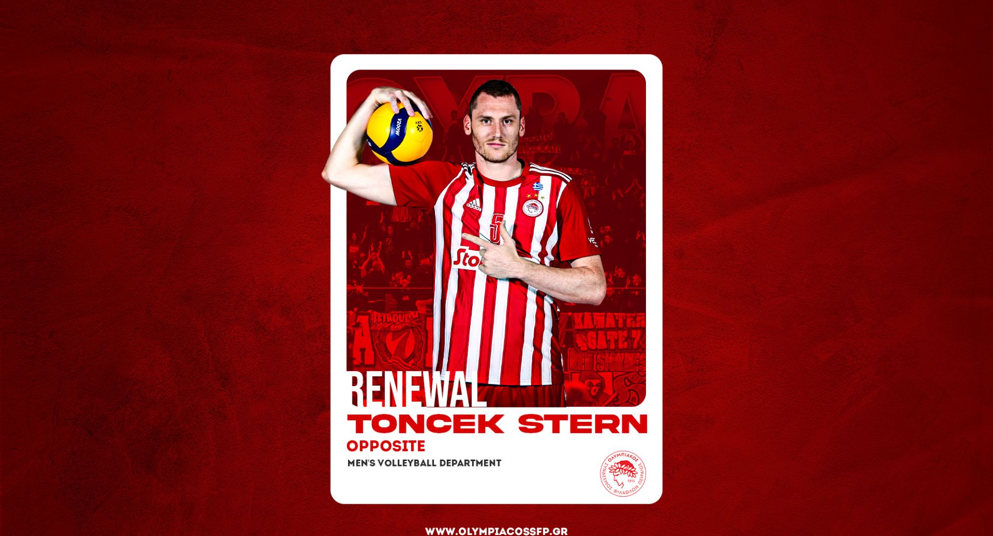 Ο ΟΛΥΜΠΙΑΚΟΣ Σ.Φ.Π. ανακοινώνει την ανανέωση της συνεργασίας του με τον Τόνσεκ Στερν. Ο διεθνής Σλοβένος διαγώνιος υπέγραψε το νέο του συμβόλαιο και παραμένει στο ρόστερ της ομάδας βόλεϊ Ανδρών του συλλόγου.
