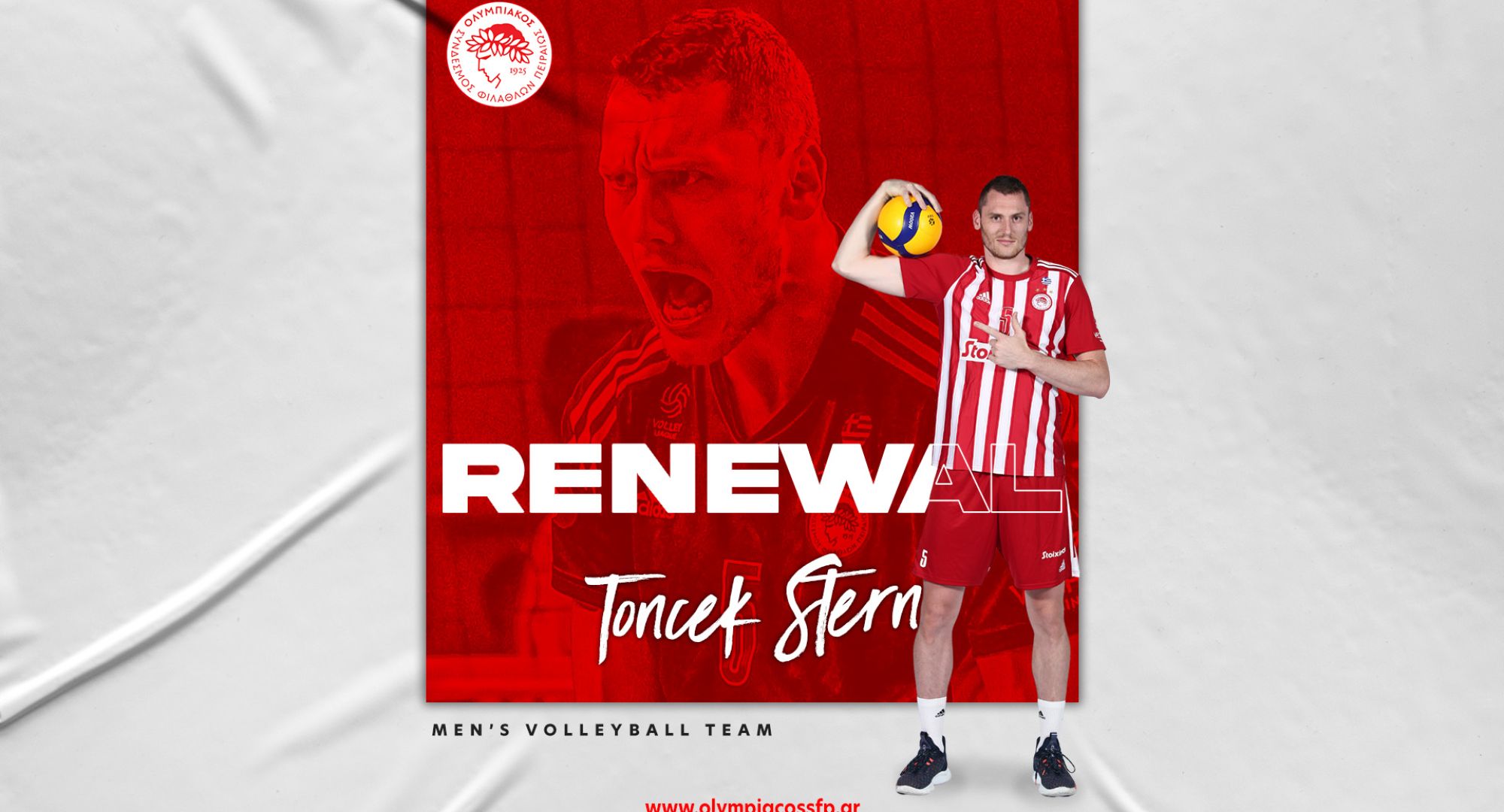 Ο ΟΛΥΜΠΙΑΚΟΣ Σ.Φ.Π. ανακοινώνει την ανανέωση της συνεργασίας του με τον Τόνσεκ Στερν. Ο διεθνής Σλοβένος διαγώνιος υπέγραψε το νέο του συμβόλαιο και παραμένει στο ρόστερ της ομάδας βόλεϊ Ανδρών του συλλόγου.