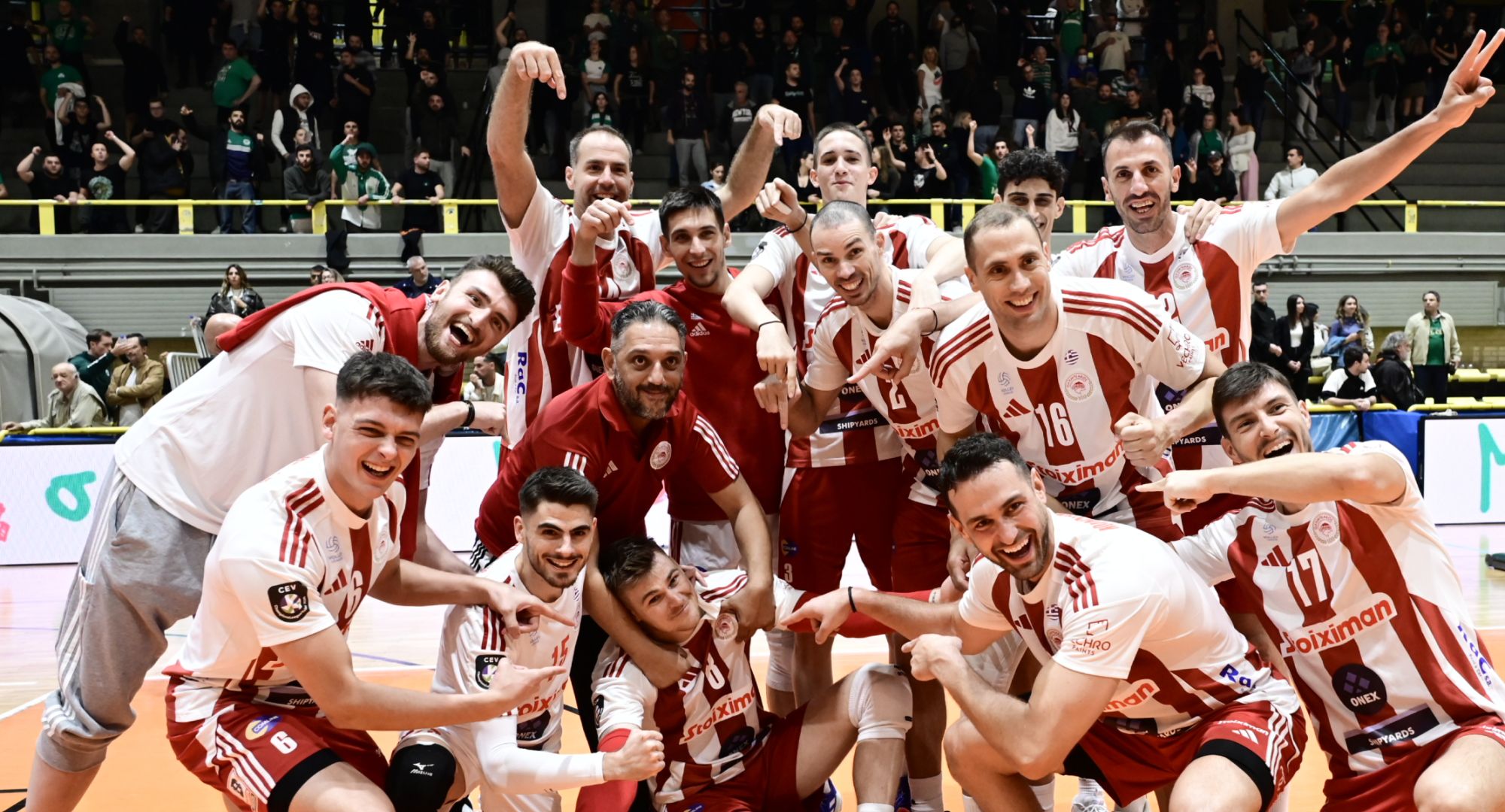 Στο πρώτο φετινό ντέρμπι του πρωταθλήματος, οι «ερυθρόλευκοι» νταμπλούχοι Ελλάδας φανέρωσαν ένα δείγμα της ποιότητάς τους, ήταν ανώτεροι, πιο σταθεροί και πιο ψύχραιμοι στα κρίσιμα σημεία από τους «πράσινους» και έτσι, έφυγαν νικητές από το κλειστό γυμναστήριο του Μετς, με 13 μπλοκ και 56% αποτελεσματικότητα στην επίθεση (55/99 επιθέσεις).