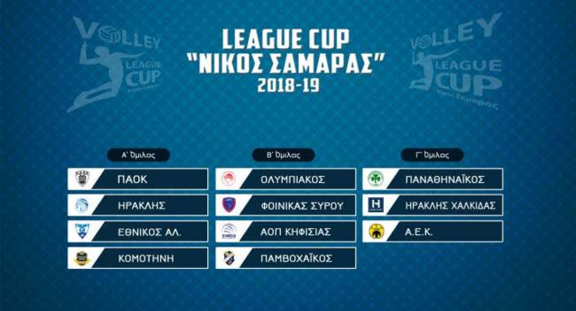 Πραγματοποιήθηκε σήμερα στα γραφεία της ΕΣΑΠ η κλήρωση του Λιγκ Καπ Νίκος Σαμαράς για την αγωνιστική σεζόν 2018-19. Ο Ολυμπιακός βρίσκεται στον Β όμιλο με τους Φοίνικα Σύρου, ΑΟΠ Κηφισιάς και ΓΑΣ Παμβοχαϊκό.