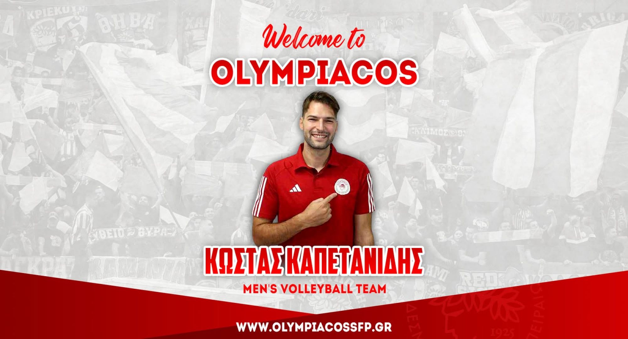 Ο ΟΛΥΜΠΙΑΚΟΣ Σ.Φ.Π. ανακοινώνει την έναρξη της συνεργασίας του με τον Κώστα Καπετανίδη. Ο 26χρονος ακραίος (ημ. γέννησης 24/3/1999, 1,93μ.) υπέγραψε το νέο του συμβόλαιο και εντάσσεται στο ρόστερ της ομάδας βόλεϊ Ανδρών του Ολυμπιακού ΟΝΕΧ.