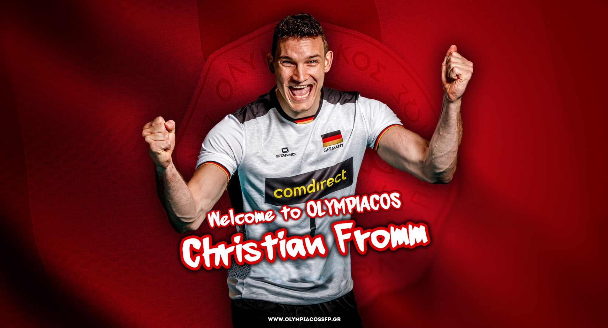 Ο ΟΛΥΜΠΙΑΚΟΣ Σ.Φ.Π., ανακοινώνει την έναρξη της συνεργασίας του με τον Κρίστιαν Φρομ. Ο διεθνής Γερμανός ακραίος (ημ. Γέννησης 15/08/1990), ύψους 2.04μ. υπέγραψε το συμβόλαιο του και εντάσσεται στο ρόστερ της ομάδας βόλεϊ Ανδρών.