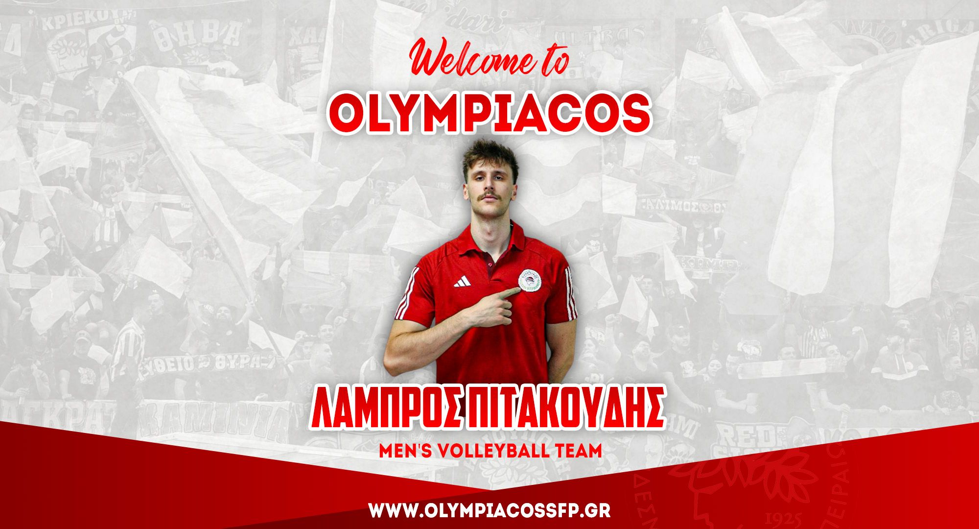 Ο ΟΛΥΜΠΙΑΚΟΣ Σ.Φ.Π. ανακοινώνει την έναρξη της συνεργασίας του με τον Λάμπρο Πιτακούδη. Ο διεθνής κεντρικός (ημ. γέννησης 13/7/2002, 2,02μ.) υπέγραψε το νέο του συμβόλαιο και εντάσσεται στο ρόστερ της ομάδας βόλεϊ Ανδρών του συλλόγου.