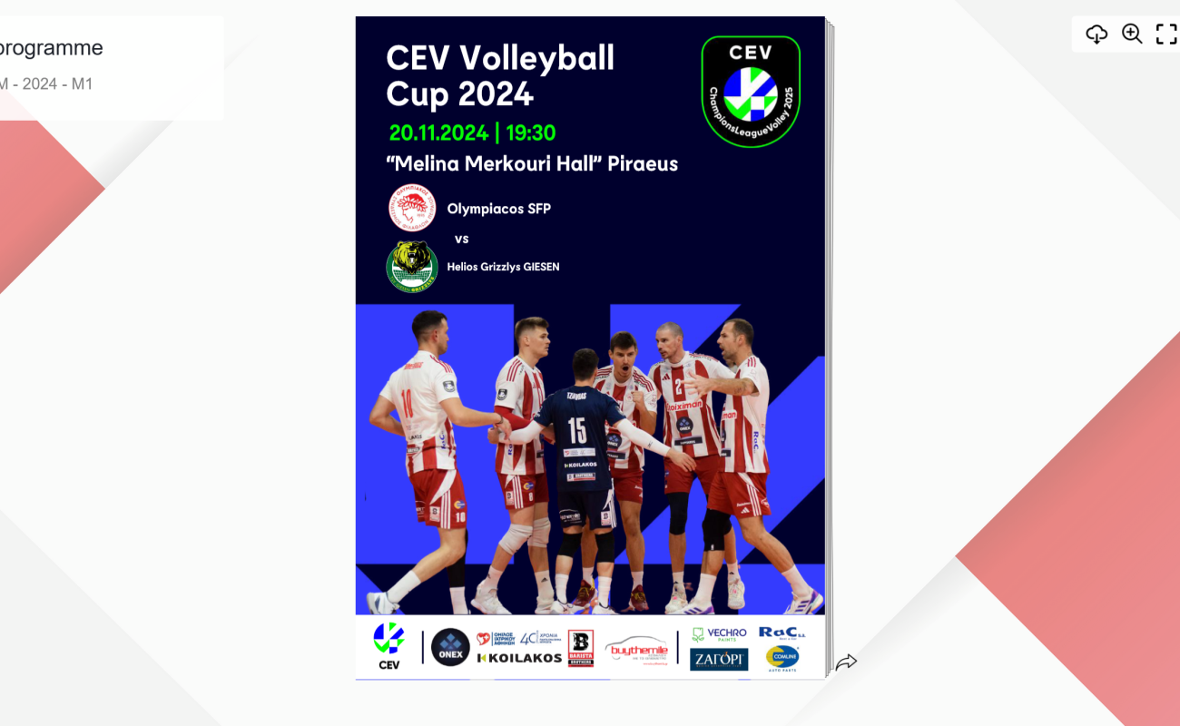 Το Match Programme του Ολυμπιακός ΟΝΕΧ-Γκίζεν Διαβάστε το matchprogram του αγώνα Ολυμπιακός ΟΝΕΧ - Γκίζεν για την 2η αγωνιστική της φάσης των ομίλων του CEV Champions League.