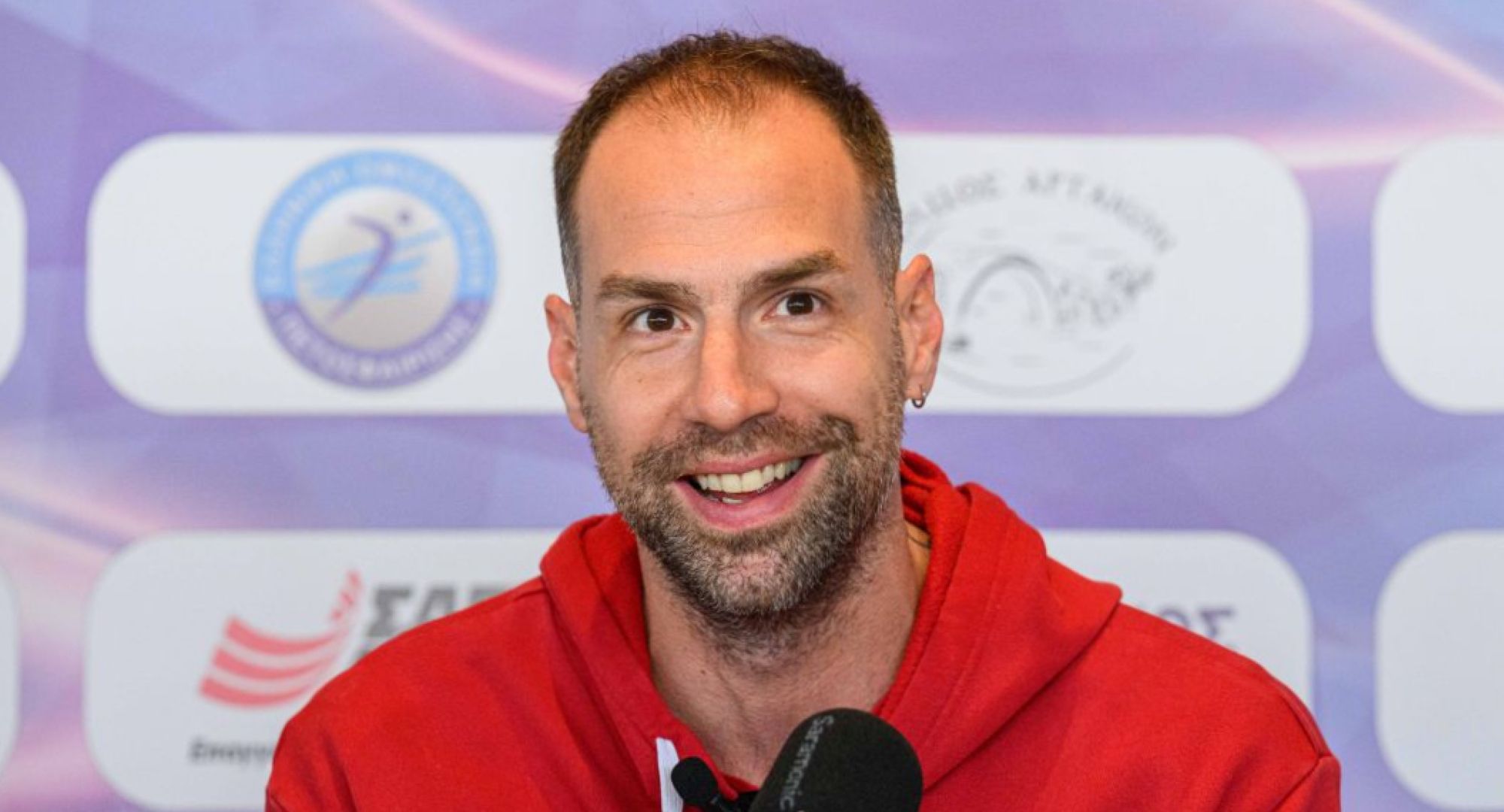 Ντράγκαν Τράβιτσα: «Καλησπέρα κι από εμένα. Καταρχάς, ευχαριστούμε για τη φιλοξενία και για την υποδοχή. Παρόλο που δεν είχε ήλιο, έχει εξαιρετική θέα. Όλοι θα πούμε τα ίδια πάνω-κάτω. Ωστόσο, εγώ θέλω να δω οικογένειες και νεαρά παιδιά. Γιατί θέλω να δημιουργηθεί η φλόγα και για τα νέα παιδιά να βάλουν το βόλεϊ στη ζωή τους. Επίσης, φυσικά και εύχομαι καλή επιτυχία σε όλους. Διότι αυτό είναι που μας κρατάει μετά από τόσα χρόνια. Επιπλέον, το καλύτερο που μπορείς να κάνεις ως παίκτης, είναι να βάλεις τον εαυτό σου σε μια συνθήκη. Δηλαδή να διεκδικείς το καλύτερο απέναντι στους καλύτερους. Ελπίζω, να παίξουμε το καλύτερο μας βόλεϊ, αλλά και να το διασκεδάσουμε. Είναι η τρίτη μου συμμετοχή. Ναι είναι κάτι το ιδιαίτερο και ξεχωριστό».