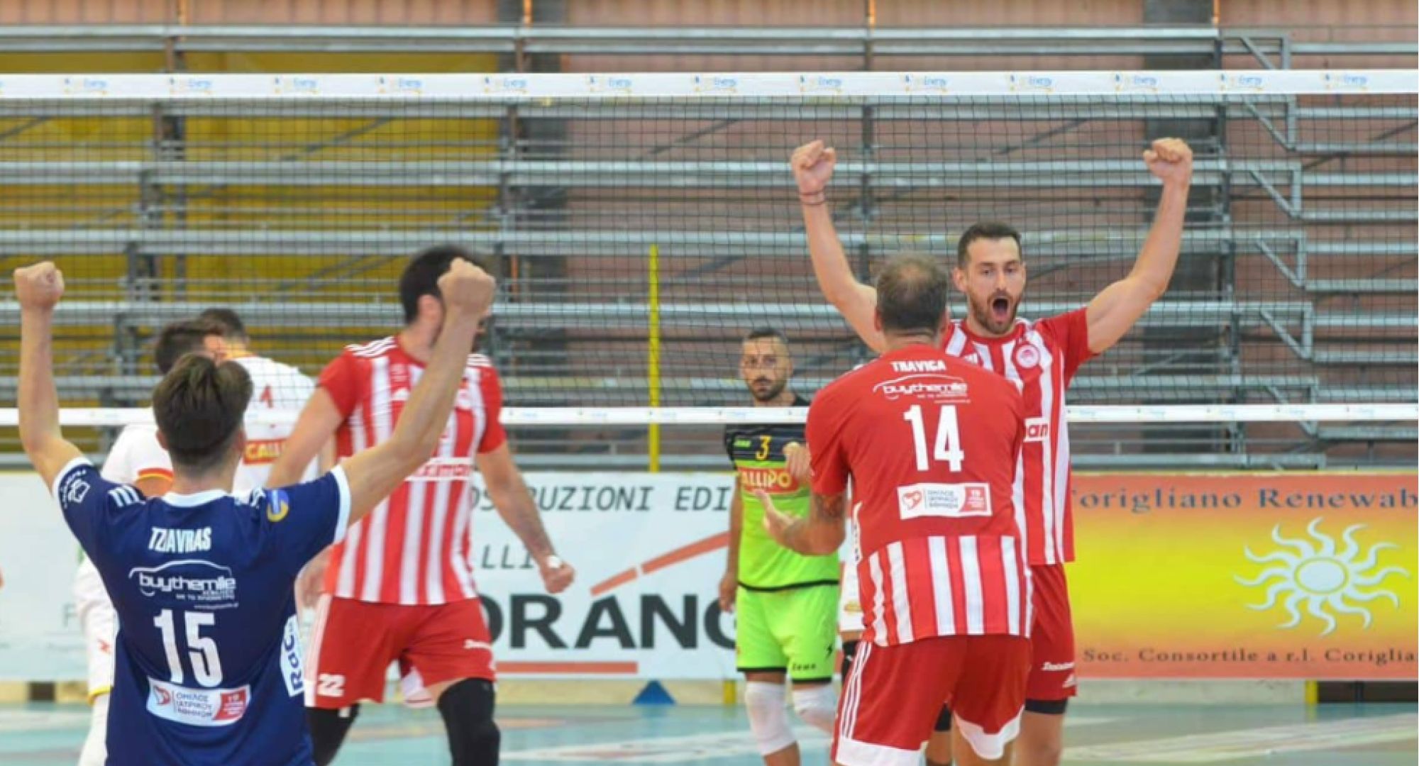ΟΛΥΜΠΙΑΚΟΣ (Αλμπέρτο Τζουλιάνι): Παγένκ 7 (5/9 επ., 2 μπλοκ), Στερν 12 (10/17 επ., 2 άσσοι), Κουμεντάκης 11 (9/21 επ., 1 μπλοκ, 57%υπ.-57%αρ.), Τράβιτσα, Λινάρδος 9 (5/7 επ.,3 μπλοκ, 1 άσσος), Ιντάλγκο 6 (6/16 επ., 67%υπ.-33%αρ.), Τζιάβρας (λ.67%υπ.-33%αρ.)/ Χανδρινός
