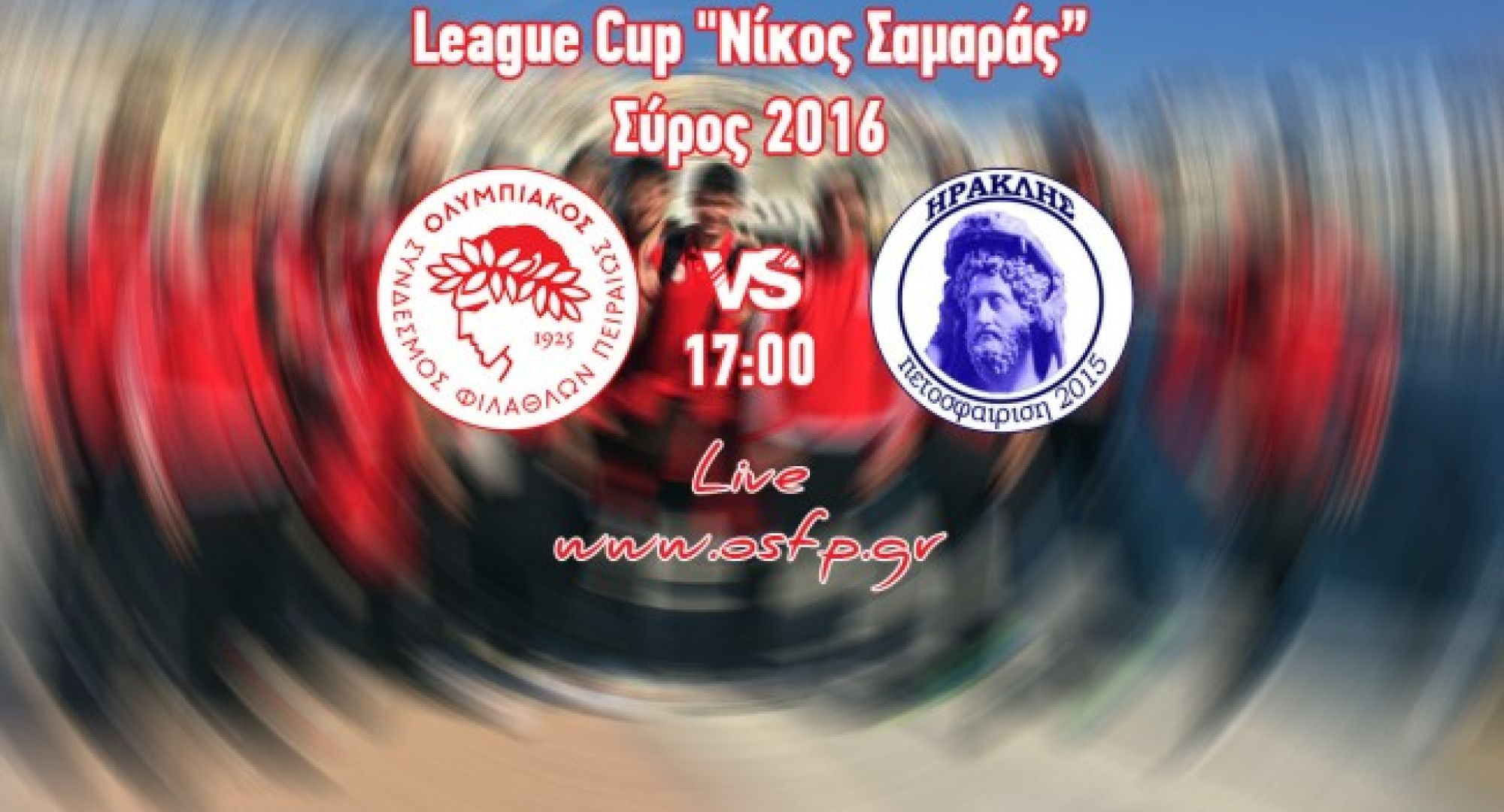 Παρακολουθήστε σε ζωντανή γραπτή περιγραφή την εξέλιξη του αγώνα Ολυμπιακός - Ηρακλής στον ημιτελικό του League Cup "Νίκος Σαμαράς" που διεξάγεται στην Σύρο.