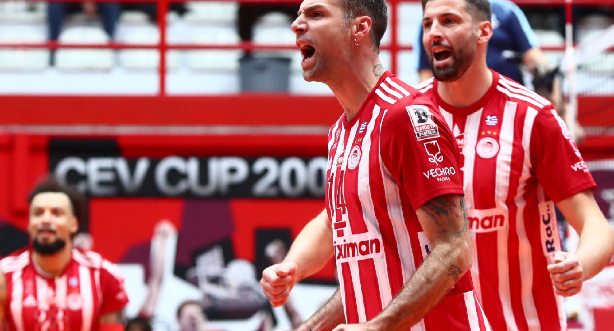 ΟΛΥΜΠΙΑΚΟΣ (Ντανιέλ Καστελάνι): Στερν 14 (13/21 επ., 1 άσσος), Γκουσταβάο 9 (3/8 επ, 1 άσσος, 5 μπλοκ), Κουμεντάκης 7 (6/15 επ., 1 άσσος, 70% υπ. - 60% άριστες), Τράβιτσα 2 (2/3 επ.), Τζούριτς 9 (8/11 επ., 1 μπλοκ), Ιντάλγκο 15 (10/14 επ., 4 άσσοι, 1 μπλοκ, 36% υπ. – 36% άριστες) / Τζιάβρας (λ., 44% υπ. - 44% άριστες)