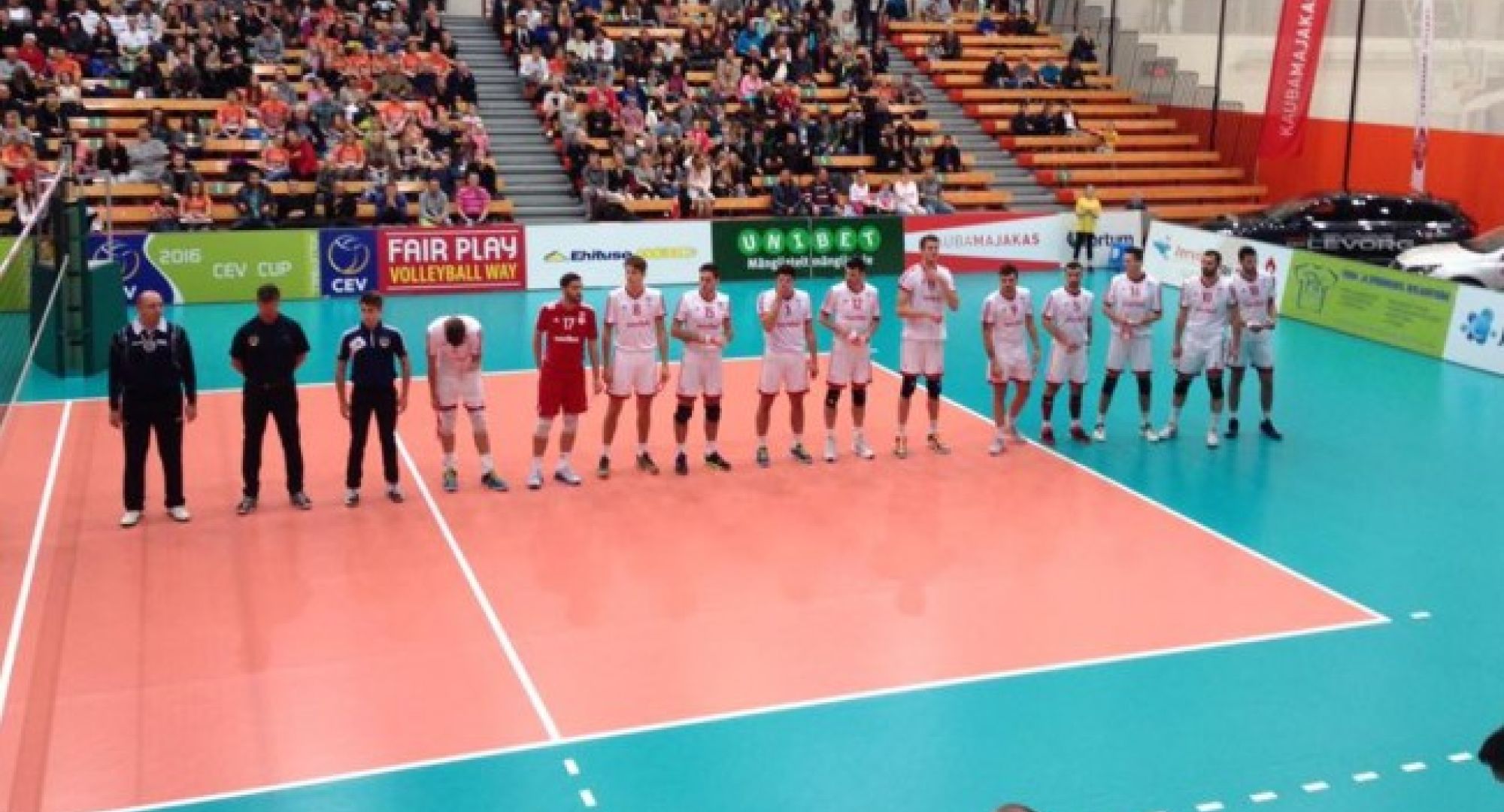 Το πρώτο βήμα για πρόκριση στους «16» του CEV Cup πραγματοποίησε ο Ολυμπιακός που επικράτησε 3-1 σετ (20-25, 25-20, 32-30, 25-16) της Παρνού στην Εσθονία και του αρκεί μια ακόμα νίκη με οποιοδήποτε αποτέλεσμα για να «σφραγίσει» το εισιτήριο για την επόμενη φάση. Σε περίπτωση πρόκρισης ο Ολυμπιακός θα τεθεί αντιμέτωπος με τον νικητή του ζευγαριού Ζλιν (Τσεχία)-Κραιόβα (Ρουμανία). Εκ των πρωταγωνιστών της νίκης του Ολυμπιακού, ήταν ο Σλοβάκος ακραίος Φράντισεκ Όγκουρτσακ που ολοκλήρωσε το παιχνίδι με 16 πόντους και δημιούργησε προβλήματα στους Εσθονούς από το σερβίς οδηγώντας τον Θρύλο στη νικηφόρα πρεμιέρα στις ευρωπαϊκές του υποχρεώσεις. Πολύ καλή εμφάνιση πραγματοποίησαν επίσης οι Χάρης Σακόγλου και Κώστας Στιβαχτής που αγωνίστηκαν μετά τα δυο πρώτα σετ ως βασικοί στις θέσεις των Έγκλεσκαλνς και Φιλίποφ καθώς και ο Μπόζινταρ Τσουκ. Οι Πειραιώτες βρέθηκαν να χάνουν στο πρώτο σετ, όμως σταδιακά βελτίωσαν την απόδοσή τους και αφού ισοφάρισαν, έκαναν την ανατροπή στο συναρπαστικό 3ο σετ, αφού παρότι έχαναν με 24-23 και 27-26, το κέρδισαν με 30-32 με τους πόντους που σημείωσαν σε εκείνο το σημείο οι Τσουκ και Σπίνου.