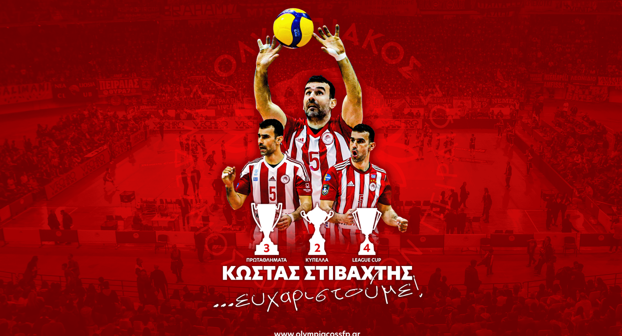 Ο ΟΛΥΜΠΙΑΚΟΣ Σ.Φ.Π. ευχαριστεί θερμά τον Κώστα Στιβαχτή για την πολυετή προσφορά του στην ομάδα βόλεϊ Ανδρών και του εύχεται καλή επιτυχία στη συνέχεια της καριέρας του. Ο Κώστας Στιβαχτής υπηρέτησε τον σύλλογο μας με μεγάλη επιτυχία και πάνω από όλα, με αξιοπρέπεια, τιμώντας την ερυθρόλευκη φανέλα για επτά χρόνια, τα δύο τελευταία με το περιβραχιόνιο του αρχηγού. Στα χρόνια παρουσίας του στον Ολυμπιακό, ο Έλληνας πασαδόρος πανηγύρισε σπουδαίες επιτυχίες, αφού κατέκτησε εννιά τίτλους και συγκεκριμένα, τρία πρωταθλήματα (2018, 2019, 2021), δύο Κύπελλα (2016, 2017) και τέσσερα League Cup (2016, 2017, 2018, 2019).