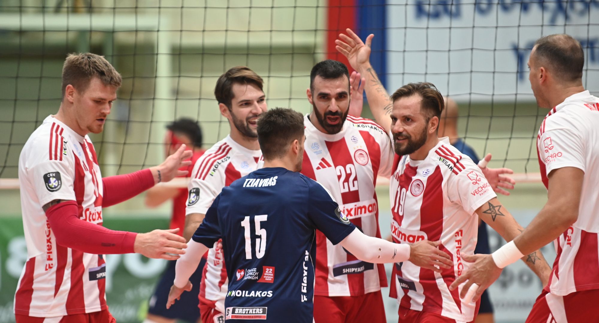 ΟΛΥΜΠΙΑΚΟΣ ΟΝΕΧ (Αντρέα Γκαρντίνι): Πιτακούδης 13 (9/14επ., 1 άσοι, 3 μπλοκ), Πέριν 7 (7/19επ., 33% υπ. – 33% άριστες), Καπετανίδης 6 (6/15επ., 44% υπ. – 39% άριστες), Ατανασίεβιτς 24 (19/40επ., 4 άσοι, 1 μπλοκ), Καβάνα 2 (1/2επ. 1 μπλοκ), Λινάρδος 3 (1/10επ., 2 μπλοκ) / Τζιάβρας (λ., 79% υπ. – 64% άριστες), Φρομ 15 (11/19επ., 4 άσοι, 50% υπ. – 35% άριστες), Χασμπάλα, Ζουπάνι 1 (1/2επ.), Δαλακούρας 10 (8/13επ., 2 μπλοκ, 58% υπ. – 50% άριστες), Κωνσταντινίδης (λ., 14% υπ.)
