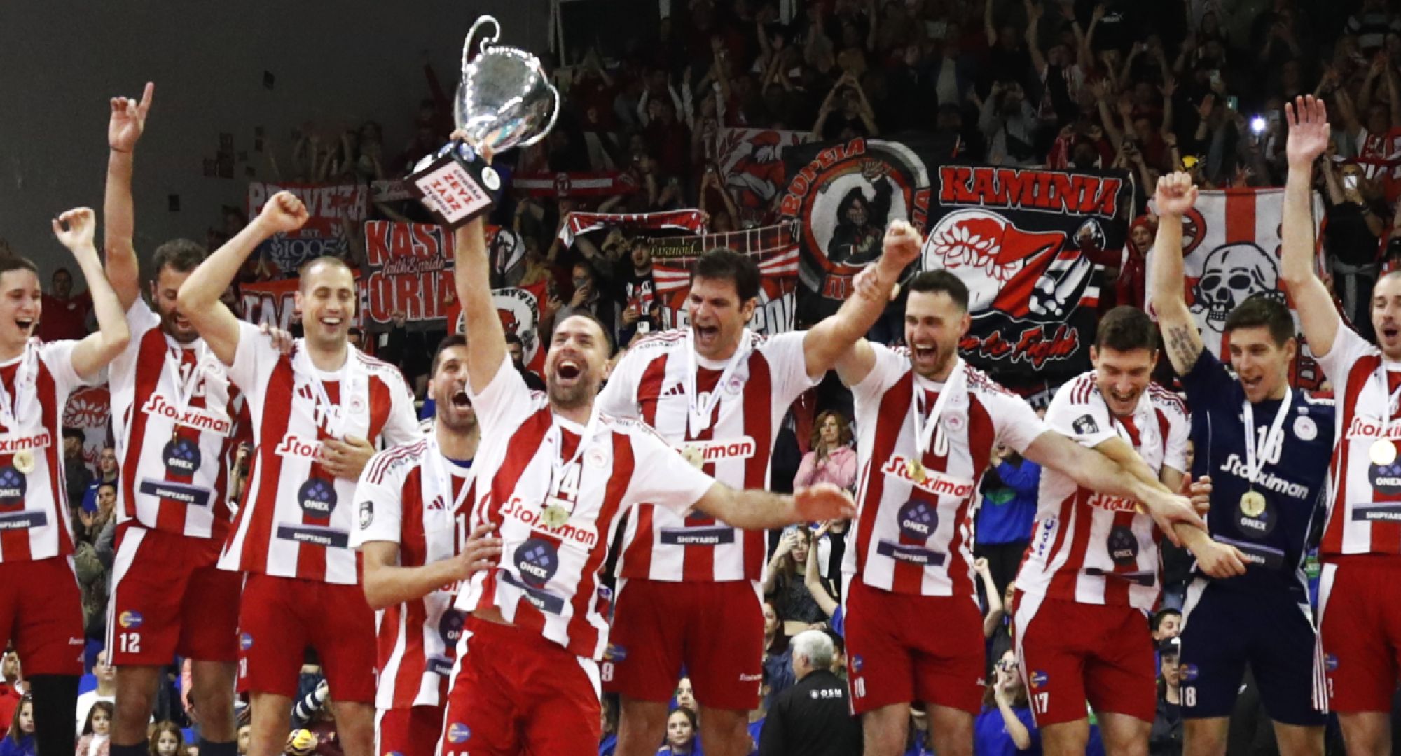 Για 19η φορά στην ιστορία της η ομάδα βόλεϊ Ανδρών του Ολυμπιακού ΟΝΕΧ αναδείχθηκε Κυπελλούχος Ελλάδας. Ο -πολυνίκης του θεσμού- Θρύλος έφτασε τα 19 Κύπελλα, αφού στον τελικό του Final-4 στην Αρτα, επικράτησε με 3-1 σετ (25-21, 25-17, 20-25, 25-21) του ΠΑΟΚ, ενώ έκανε το «τρία στα τρία» σε τίτλους τη φετινή σεζόν, μετά την κατάκτηση των Super Cup και League Cup.