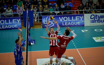 Την ήττα με 3-0 σετ (26-24, 25-20 25-21) γνώρισε στη Σύρο ο Ολυμπιακός στον 3ο ημιτελικό των πλέι...