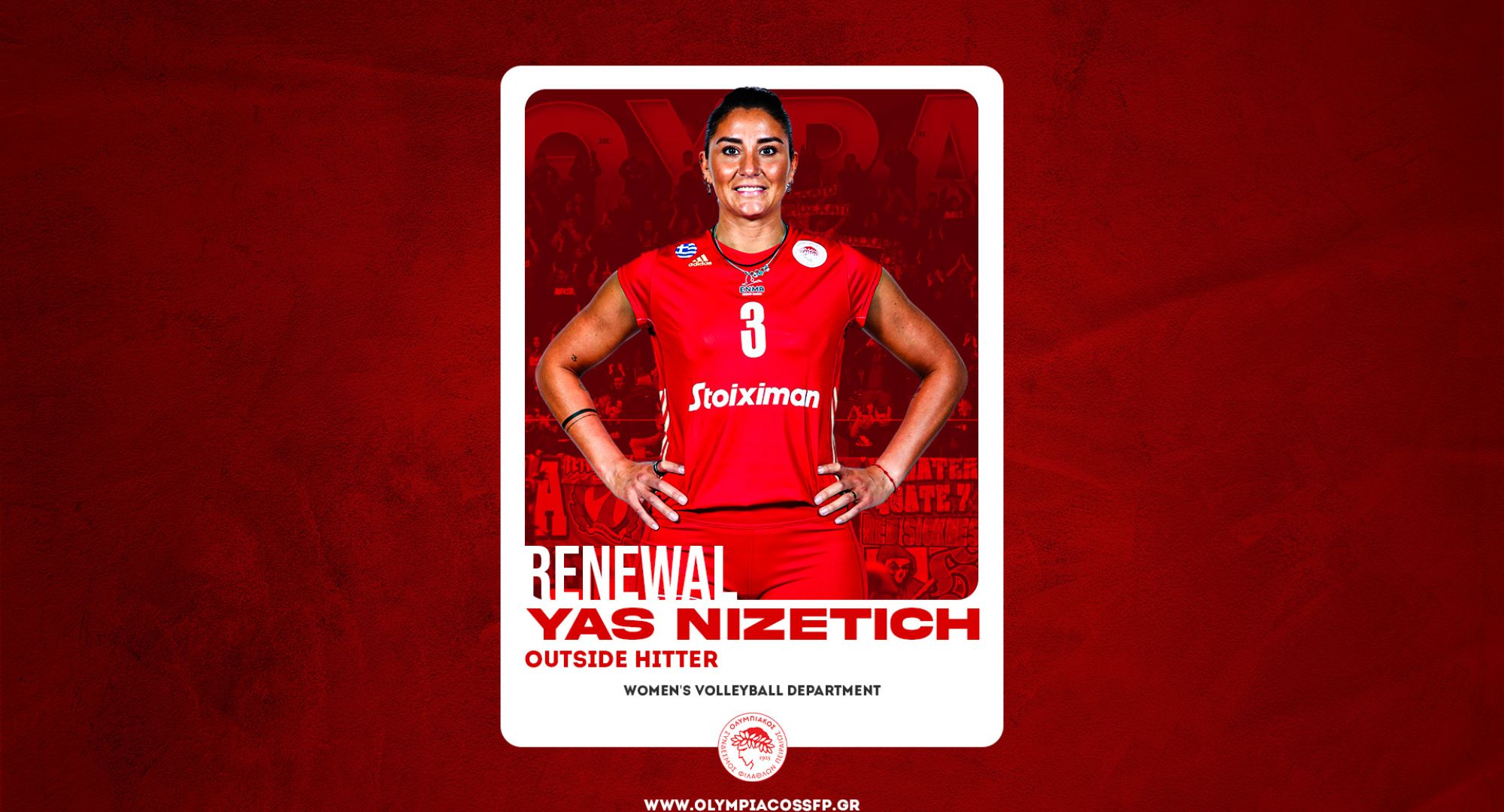 Ο ΟΛΥΜΠΙΑΚΟΣ Σ.Φ.Π. ανακοινώνει την ανανέωση της συνεργασίας του με την Γιας Νίζετιχ. Η διεθνής Αργεντίνα ακραία υπέγραψε το νέο της συμβόλαιο και παραμένει στο ρόστερ της ομάδας βόλεϊ Γυναικών του συλλόγου.