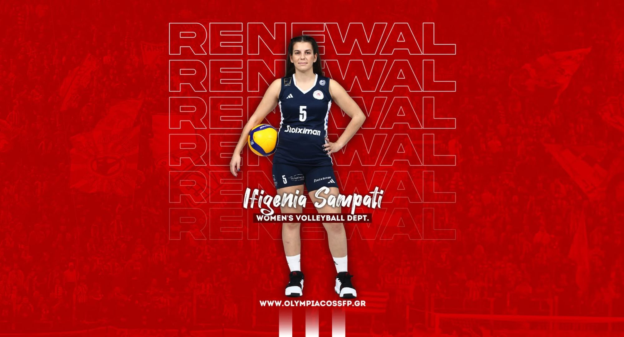 Ο ΟΛΥΜΠΙΑΚΟΣ Σ.Φ.Π. ανακοινώνει την ανανέωση της συνεργασίας του με την Ιφιγένεια Σαμπάτη. Η Ελληνίδα λίμπερο υπέγραψε το νέο της συμβόλαιο, μονοετούς διάρκειας και παραμένει στο ρόστερ της ομάδας βόλεϊ Γυναικών του συλλόγου.