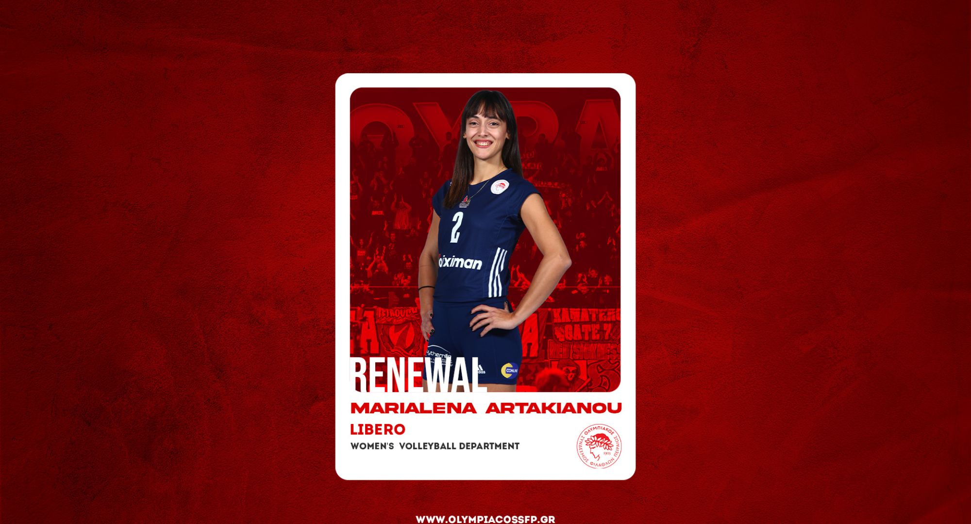 Ο ΟΛΥΜΠΙΑΚΟΣ Σ.Φ.Π. ανακοινώνει την ανανέωση της συνεργασίας του με την Μαριαλένα Αρτακιανού. Η διεθνής λίμπερο υπέγραψε το νέο της συμβόλαιο, διετούς διάρκειας και παραμένει στο ρόστερ της ομάδας βόλεϊ Γυναικών του συλλόγου.