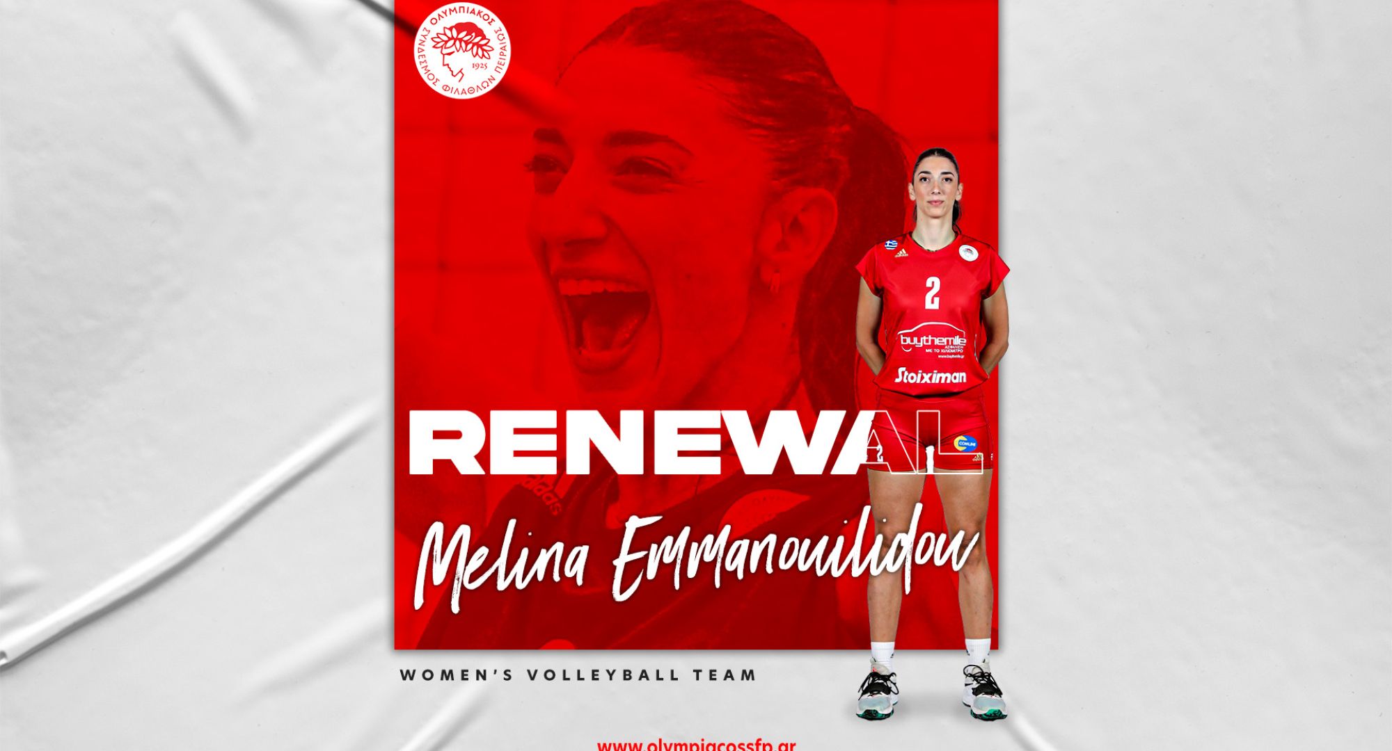 Ο ΟΛΥΜΠΙΑΚΟΣ Σ.Φ.Π. ανακοινώνει την ανανέωση της συνεργασίας του με την Μελίνα Εμμανουηλίδου. Η διεθνής Ελληνίδα κεντρική υπέγραψε το νέο της συμβόλαιο, διετούς διάρκειας και παραμένει στο ρόστερ της ομάδας βόλεϊ Γυναικών του συλλόγου.