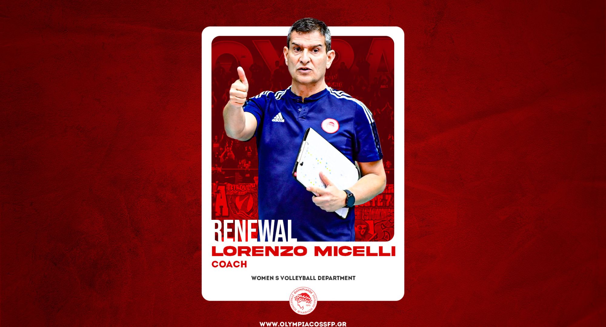Ο ΟΛΥΜΠΙΑΚΟΣ Σ.Φ.Π. ανακοινώνει την ανανέωση της συνεργασίας του με τον Λορέντζο Μιτσέλι. Ο Ιταλός προπονητής υπέγραψε το νέο του συμβόλαιο και παραμένει στην τεχνική ηγεσία της ομάδας βόλεϊ Γυναικών του συλλόγου.