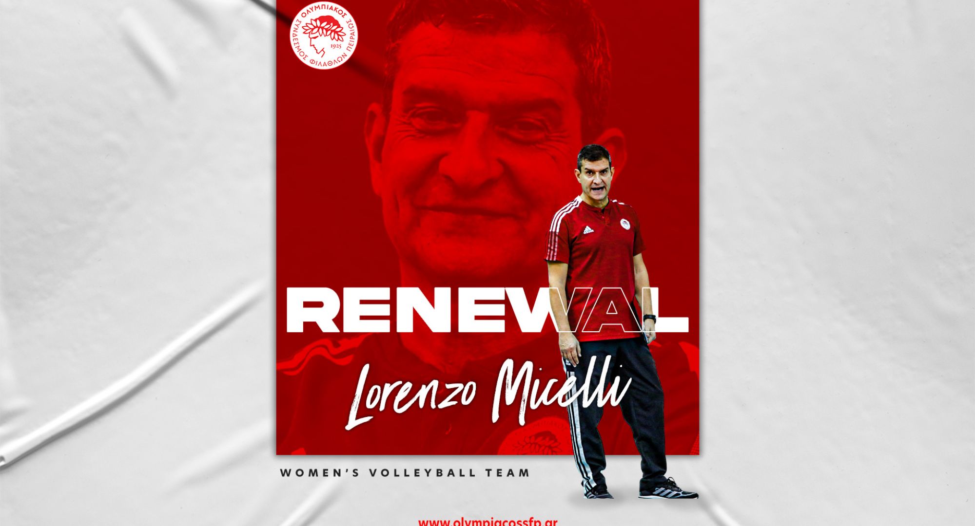 Ο ΟΛΥΜΠΙΑΚΟΣ Σ.Φ.Π. ανακοινώνει την ανανέωση της συνεργασίας του με τον Λορέντζο Μιτσέλι. Ο Ιταλός προπονητής υπέγραψε το νέο του συμβόλαιο και παραμένει στην τεχνική ηγεσία της ομάδας βόλεϊ Γυναικών του συλλόγου.