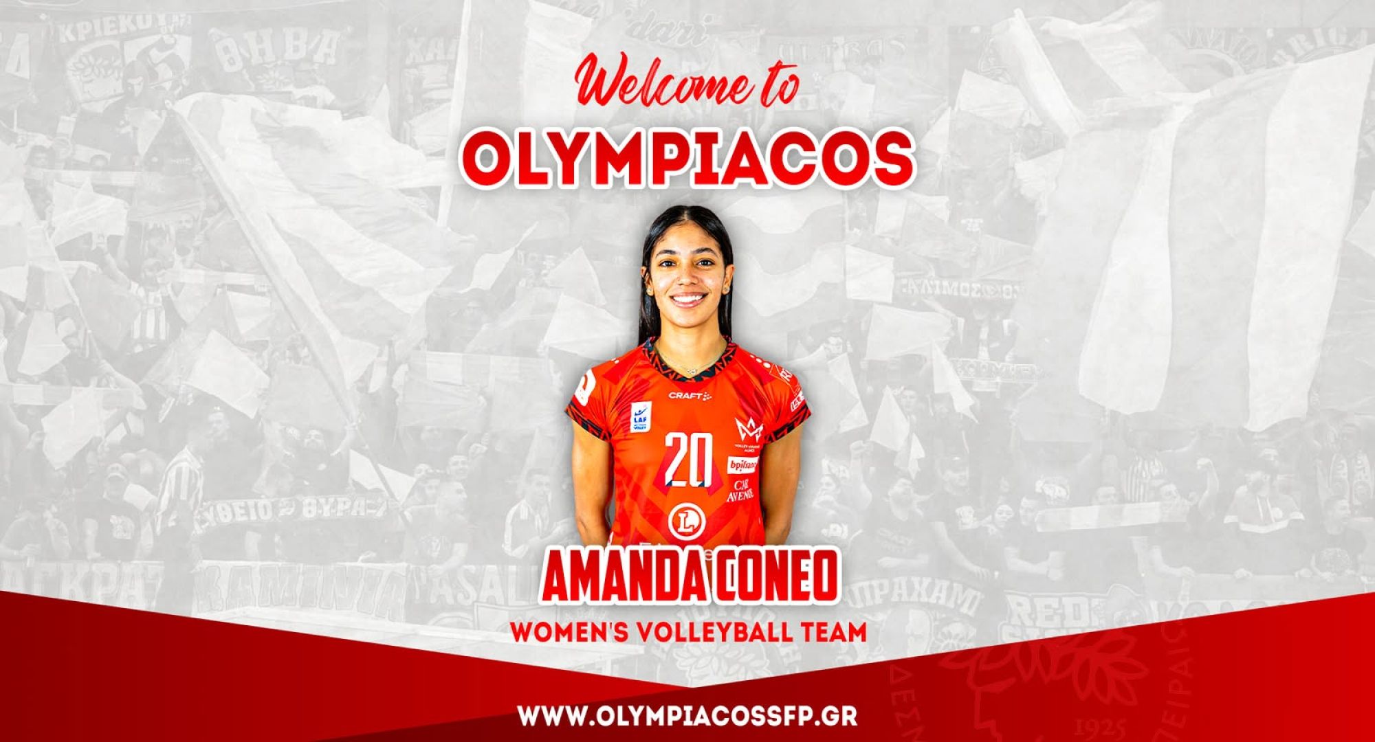 Ο ΟΛΥΜΠΙΑΚΟΣ Σ.Φ.Π. ανακοινώνει την έναρξη της συνεργασίας του με την Αμάντα Κονέο. Η διεθνής Κολομβιανή ακραία (ημ. γέννησης 20/12/1996, 1,78μ.) υπέγραψε το νέο της συμβόλαιο και εντάσσεται στο ρόστερ της ομάδας βόλεϊ Γυναικών του συλλόγου.