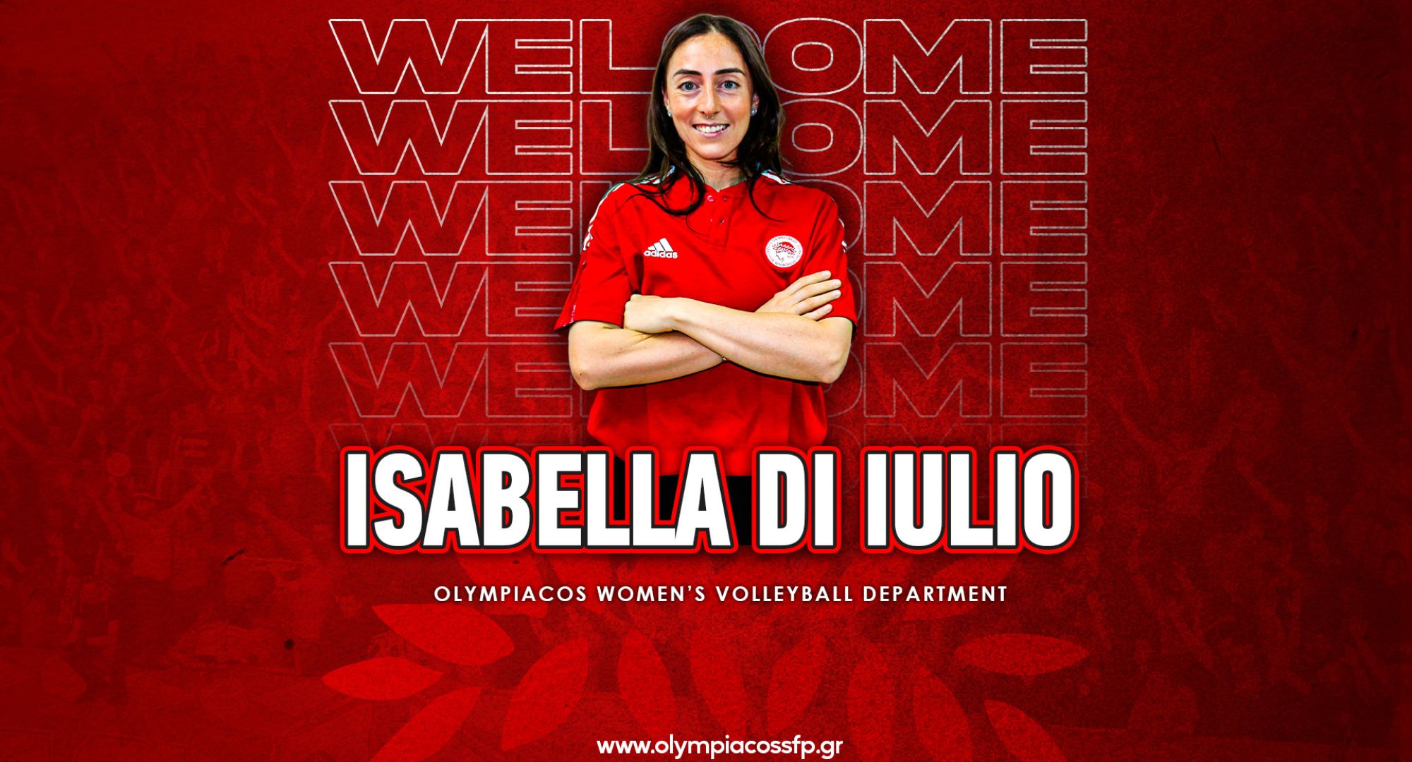 Ο ΟΛΥΜΠΙΑΚΟΣ Σ.Φ.Π. ανακοινώνει την έναρξη της συνεργασίας του με την Ιζαμπέλα Ντι Ιούλιο. Η Ιταλίδα πασαδόρος (ημ. γέννησης 26/11/1991, 1,75μ.) υπέγραψε το νέο της συμβόλαιο και εντάσσεται στο ρόστερ της ομάδας βόλεϊ Γυναικών του συλλόγου.