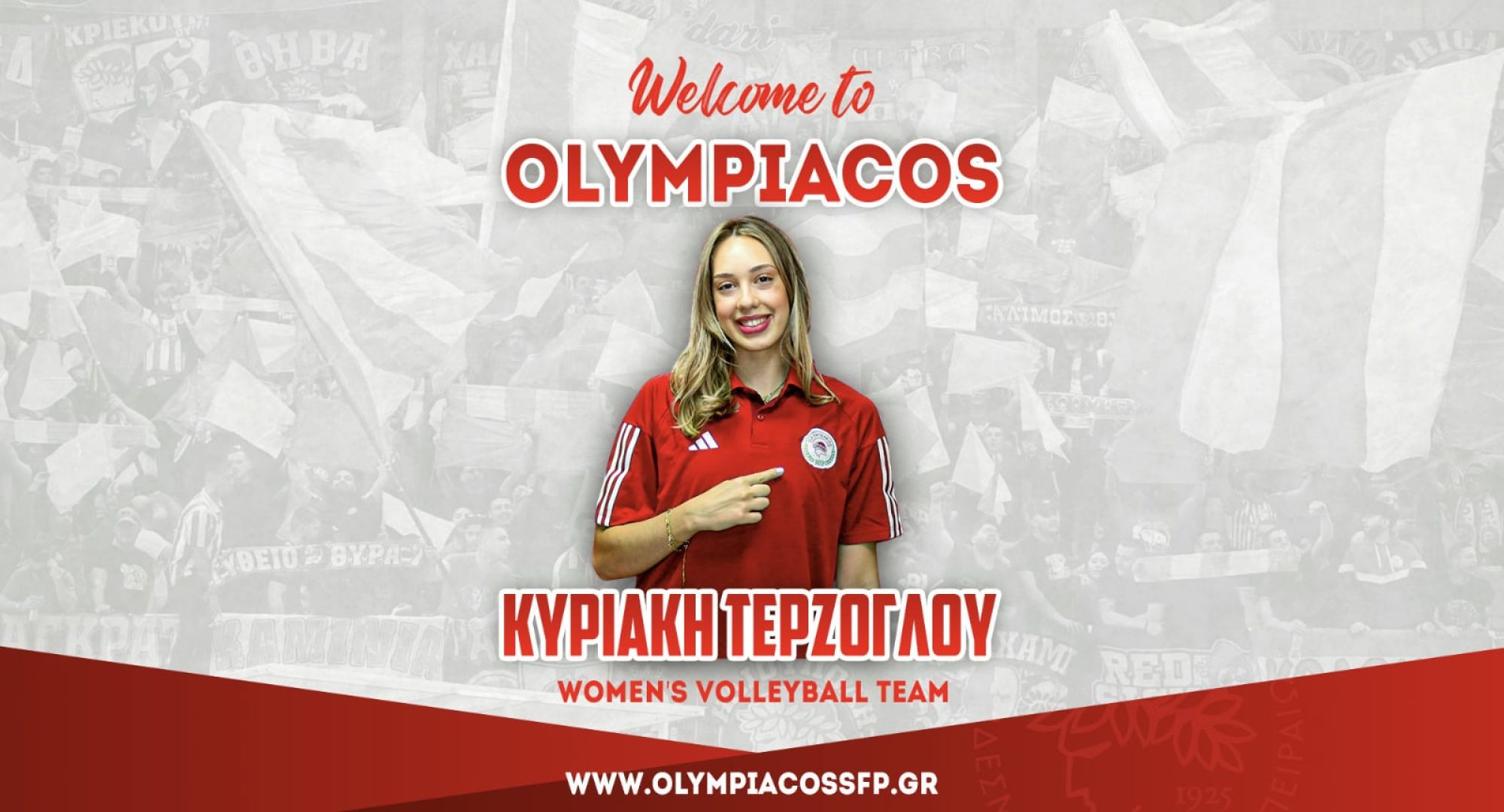 Ο ΟΛΥΜΠΙΑΚΟΣ Σ.Φ.Π. ανακοινώνει την έναρξη της συνεργασίας του με την Κυριακή Τερζόγλου. Η διεθνής κεντρική (ημ. γέννησης 22/11/2003, 1,88μ.) υπέγραψε το νέο της συμβόλαιο και εντάσσεται στο ρόστερ της ομάδας βόλεϊ Γυναικών του συλλόγου.
