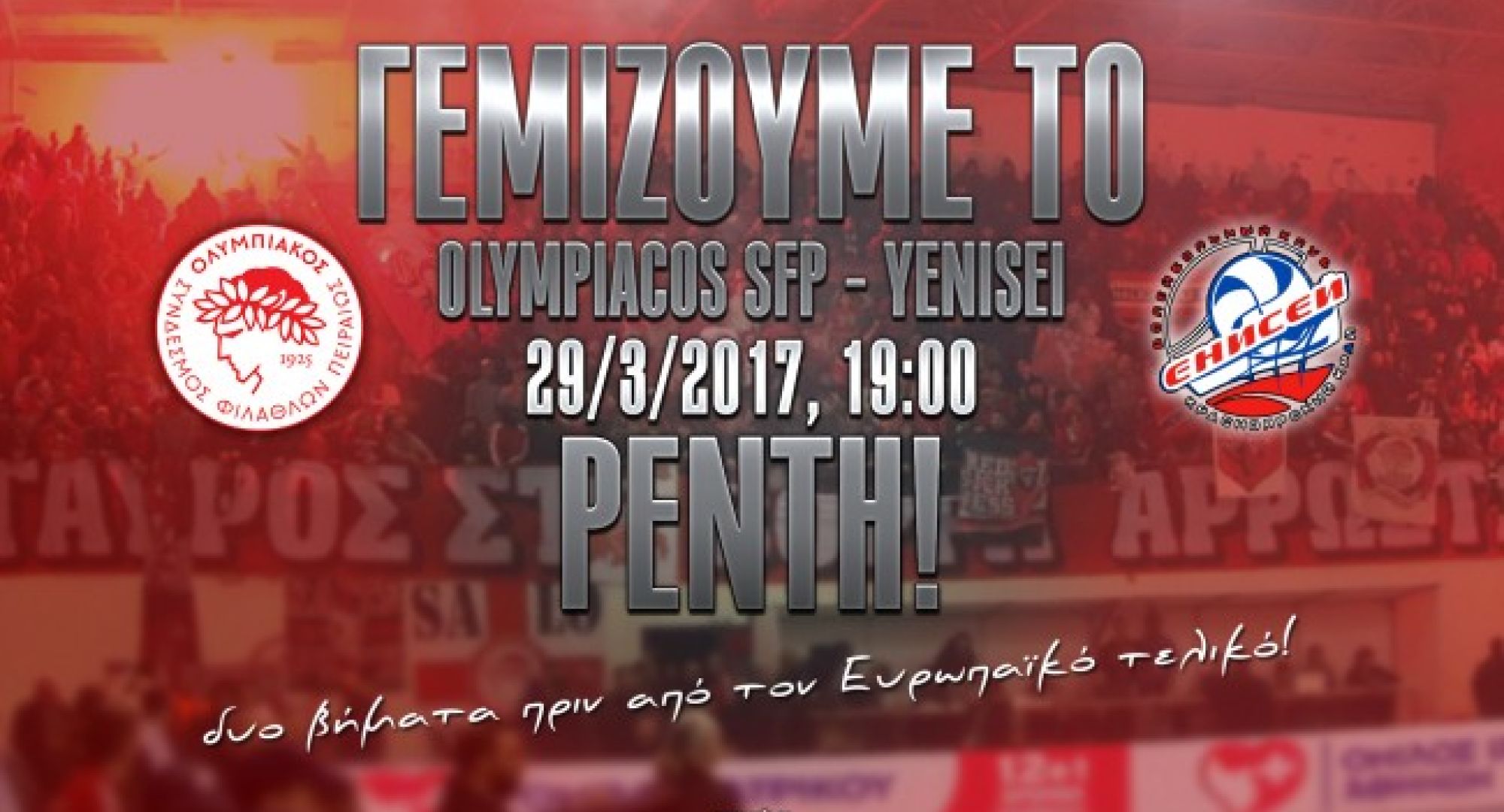 Την Τετάρτη 29 Μαρτίου στις 19:00, η ομάδα βόλεϊ Γυναικών του Ολυμπιακού, έχει ραντεβού με την ιστορία. Υποδέχεται στο Ρέντη την Ρωσική Γενισέι Κρασνιογιάρσκ στο πρώτο παιχνίδι της φάσης των «4» του Cev Challenge Cup.