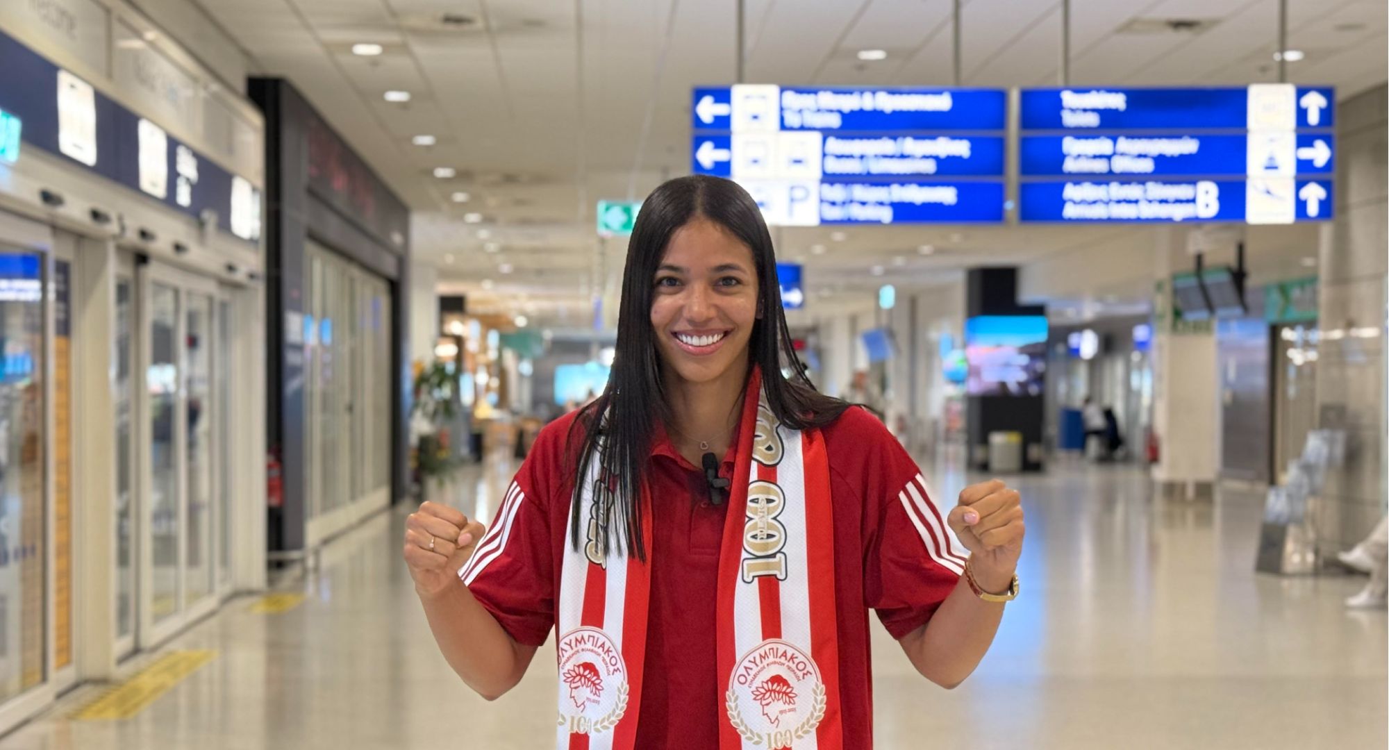 Συγκεκριμένα, κατά την άφιξή της στο αεροδρόμιο «Ελ. Βενιζέλος», η διεθνής Κολομβιανή ακραία των «ερυθρόλευκων» δήλωσε: «Είμαι πολύ ενθουσιασμένη που θα αγωνίζομαι εδώ, αυτή τη σεζόν. Ανυπομονώ! Οι στόχοι μου για τη σεζόν είναι, να κερδίσουμε τα πάντα! Πραγματικά, ανυπομονώ, είμαι πολύ ενθουσιασμένη, πολύ χαρούμενη που βρίσκομαι εδώ. Πάμε».