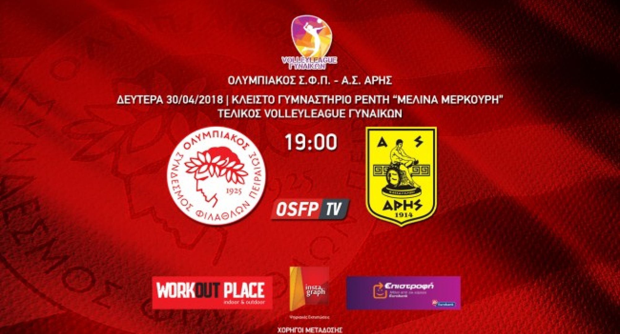 Ολυμπιακός Σ.Φ.Π. - Α.Σ. Άρης (Live! 18:05, 30/4/2018, Τελικός Volleyleague Γυναικών)