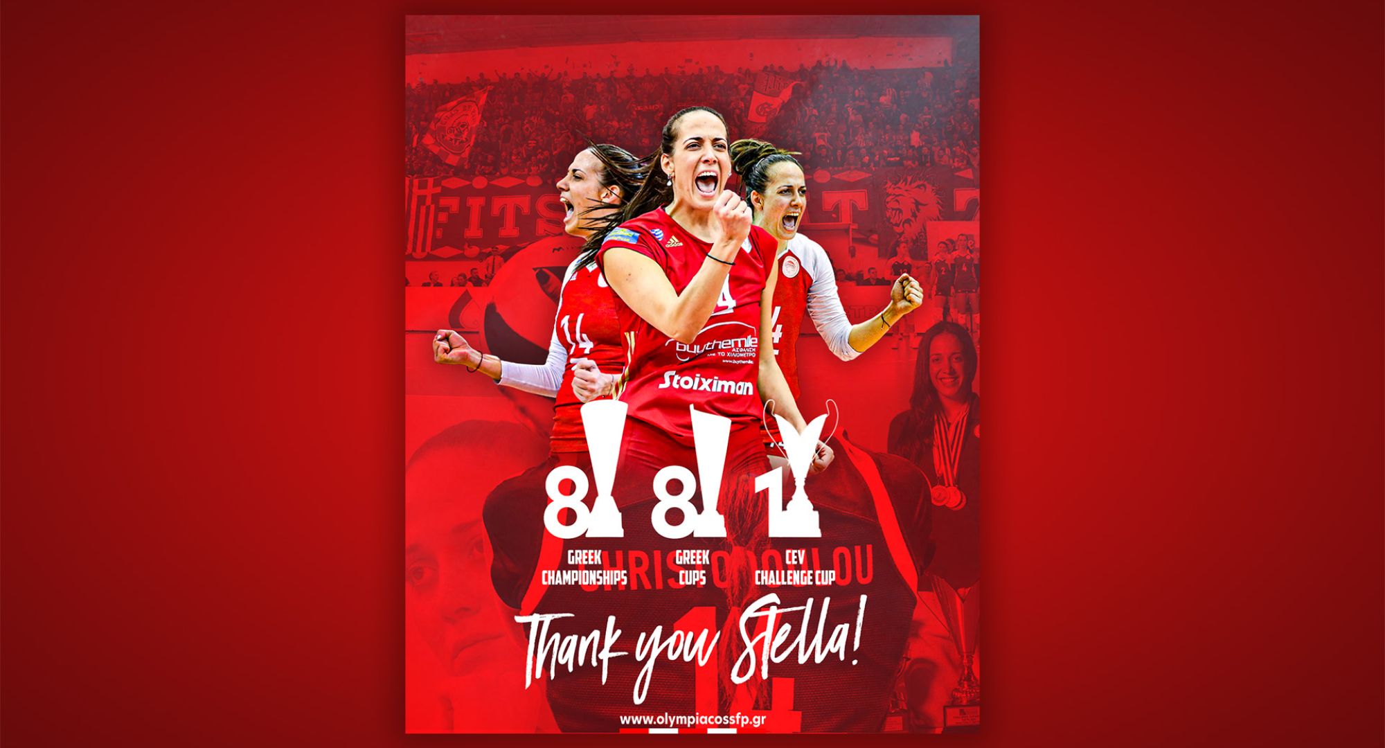 Η Στέλλα Χριστοδούλου πέτυχε τα... πάντα στον Ολυμπιακό. Τίμησε το σύλλογο μας και το περιβραχιόνιο της αρχηγού, έδωσε και την ψυχή της στα γήπεδα! Μία εμβληματική αρχηγός, ένας εξαιρετικός άνθρωπος, με αξιοπρέπεια, η Στέλλα, ολοκλήρωσε την επιτυχημένη «θητεία» της στον Θρύλο. Στέλλα, σε ευχαριστούμε για όλα! Σου ευχόμαστε τα καλύτερα στη ζωή σου, τόσο σε αθλητικό, όσο και σε προσωπικό επίπεδο.