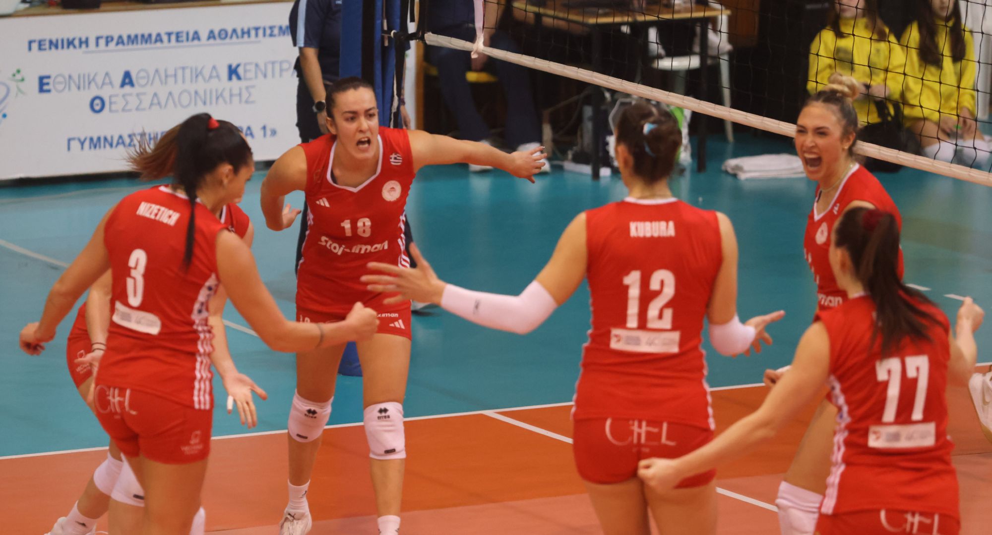 ΟΛΥΜΠΙΑΚΟΣ (Λορέντζο Μιτσέλι): Νίζετιχ 8 (6/15 επ., 2 άσσοι, 40%υπ. - 27%αρ.), Εμμανουηλίδου 9 (4/7 επ., 3 άσσοι, 2 μπλοκ), Φαριόλ 10 (4/8 επ., 6 μπλοκ), Κούμπουρα 13 (12/39 επ., 1 μπλοκ), Αμπντεραχίμ 18 (18/37 επ., 60%υπ. - 33%αρ.), Ντι Ιούλιο 5 (1/4 επ., 4 άσσοι) / Αρτακιανού (λ, 62%υπ. - 38%αρ.), Σαμπάτη (λ.), Λαμπρούση, Καλαντάτζε